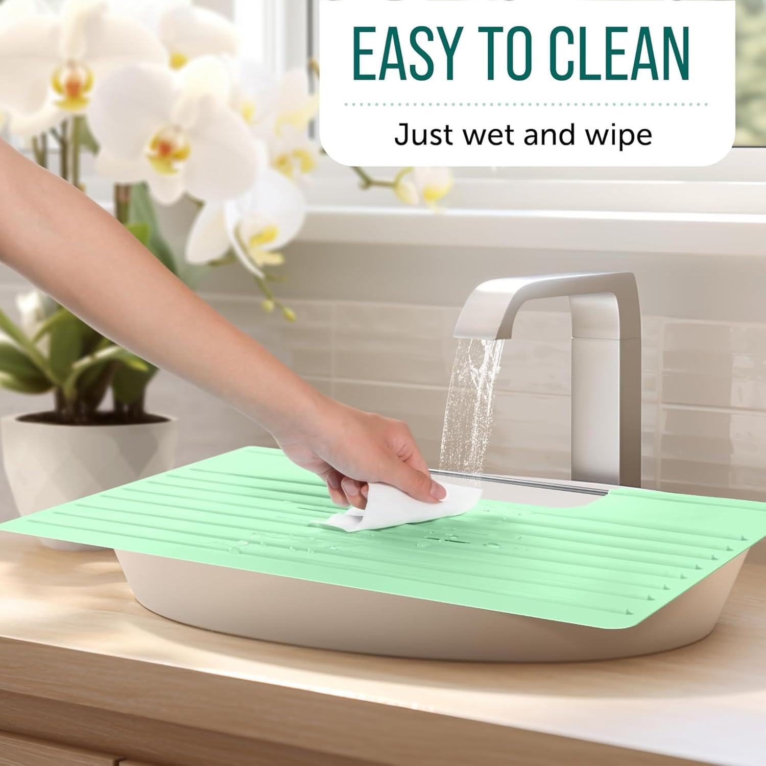 Maplefield Bathroom Sink Cover for Counter Space, Heat Resistant Silicone Sink Mat for Your Beauty Routine, Small Bathroom Space Saver Sink Cover for Makeup (Mint Large, 22 x 2 x 2 Inches)