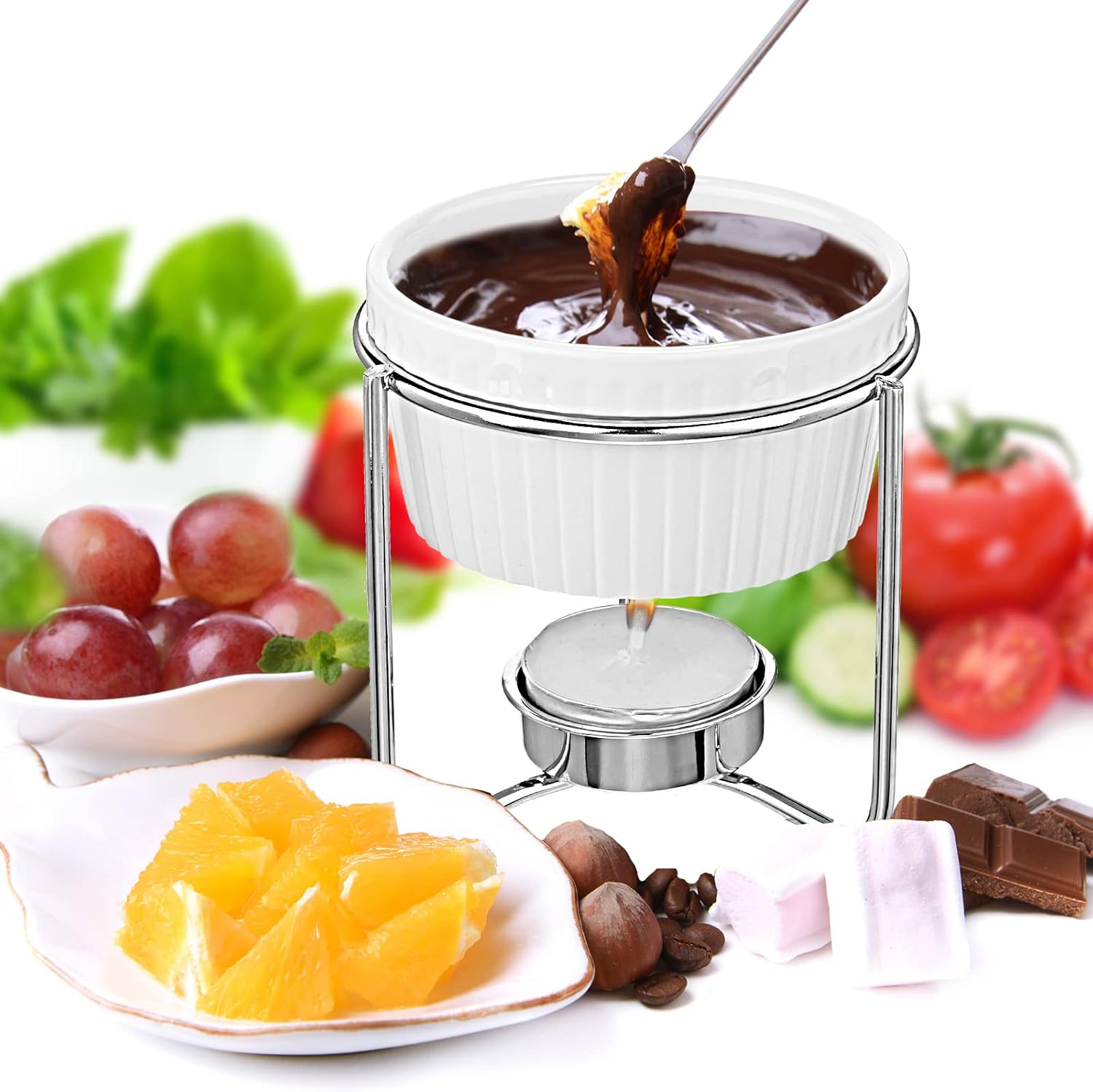 - Reliable and Serviceable: the candle food warmer is made of quality ceramic materials, which is reliable and high temperature resistant, tray is metal with tea lamp on bracket, and candles have no smell when they burn, they are friendly to your body