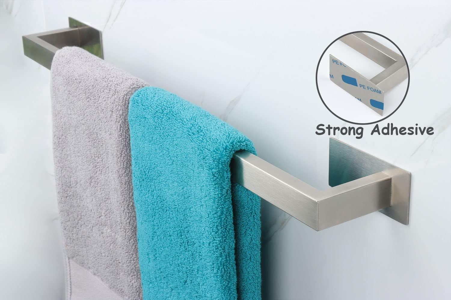 Bathroom Towel Bar Self Adhesive, No Drilling Towel Rack Easy to Install, Hand Towel Holder Made of Premium Stainless Steel Sticky on Hand Towel Hanger for Kitchen, Toilet.(24IN, Brushed)
