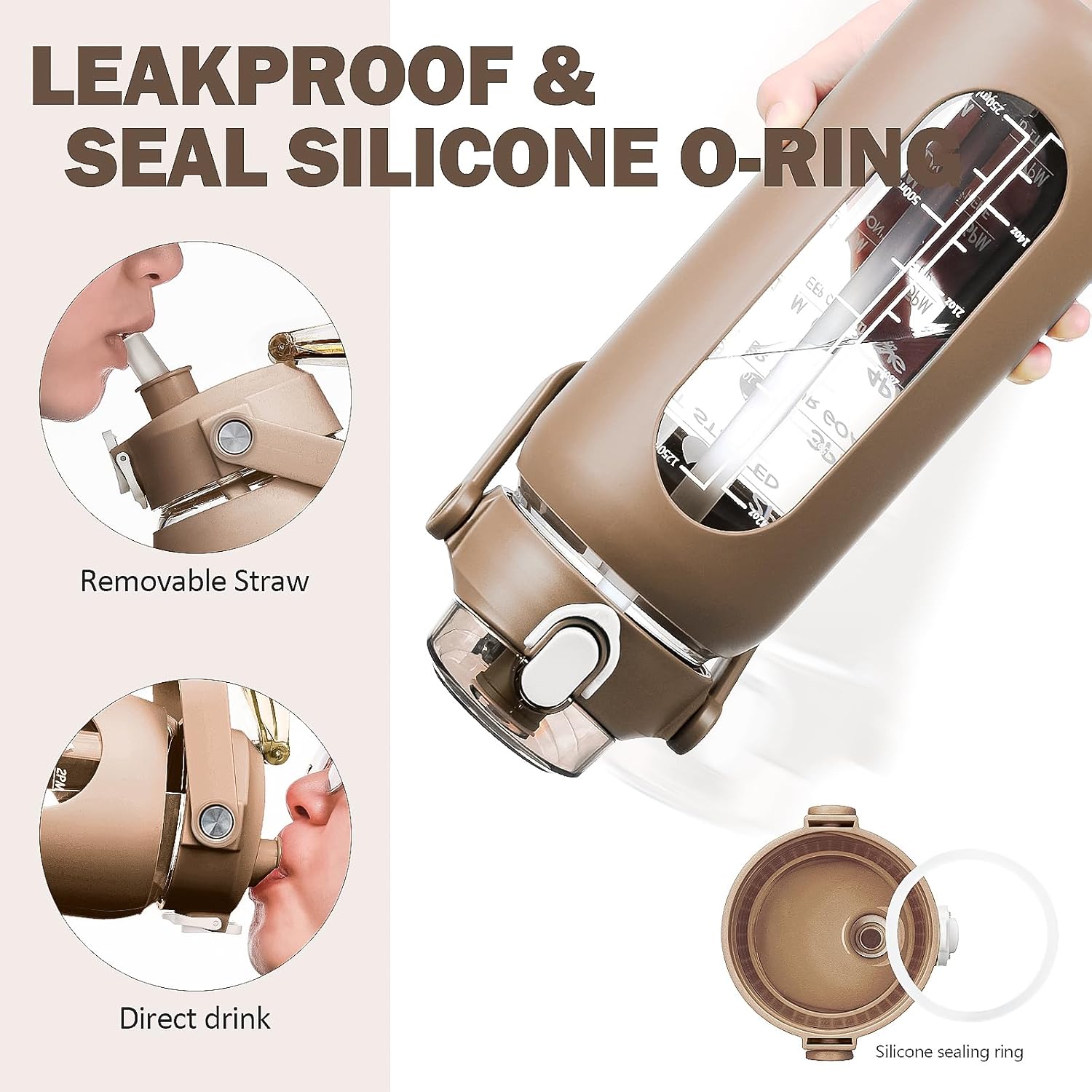 - ❤High-Quality Borosilicate Glass Bottle- This large motivationla water bottle is made of odorless, quality, borosilicate glass. Straw and lid are made of food-grade PP, BPA-free and eco-friendly.