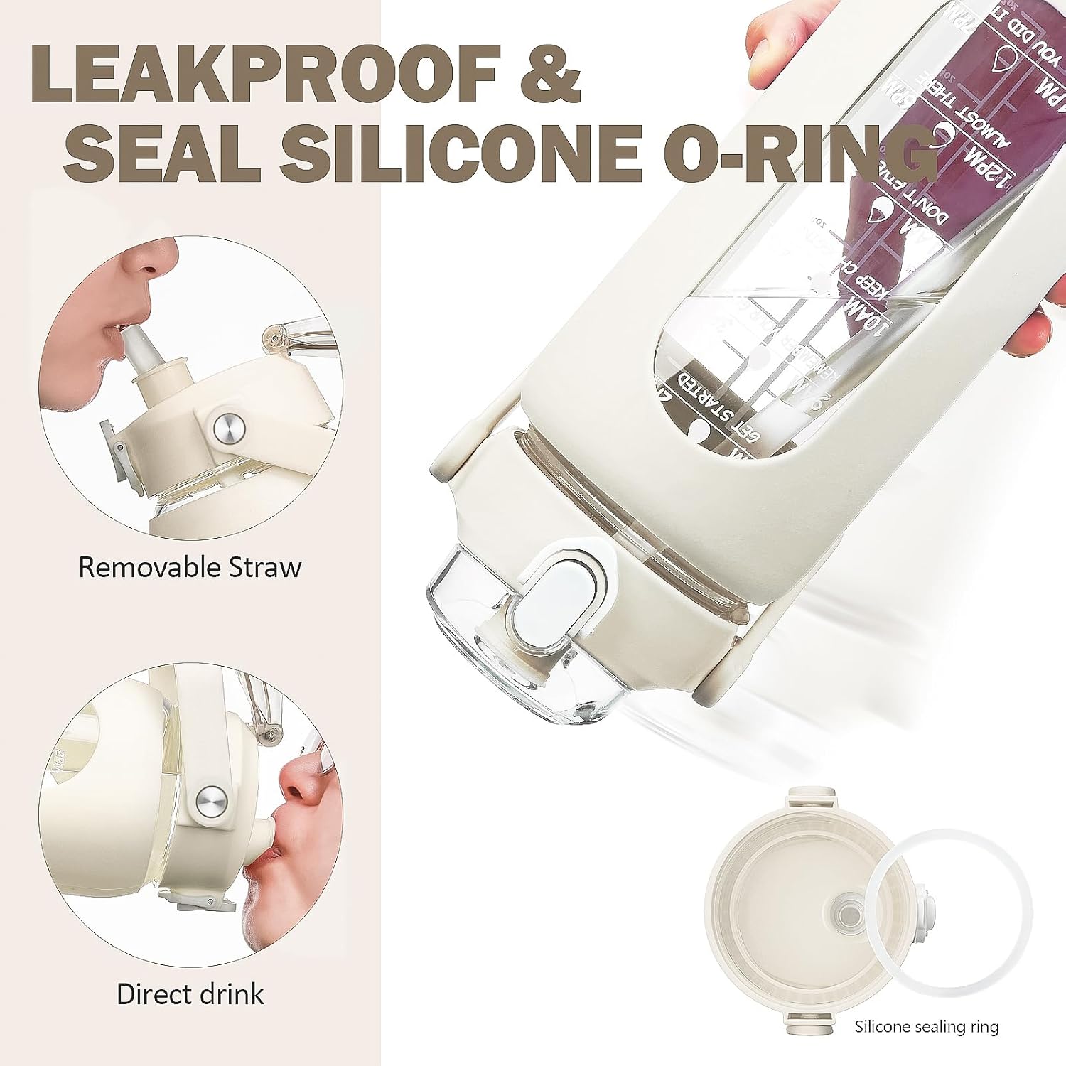 - ❤High-Quality Borosilicate Glass Bottle- This large motivationla water bottle is made of odorless, quality, borosilicate glass. Straw and lid are made of food-grade PP, BPA-free and eco-friendly.
