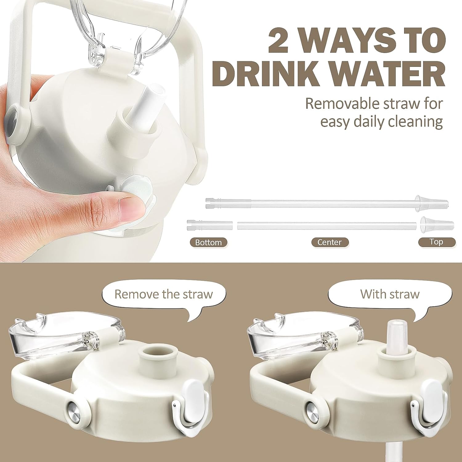 - ❤Glass Water Bottle with Pop-up Straw Lid- Kytffu large 56oz water bottle with straw is designed with an upgraded lid that ensures 100% leakproof and dustproof. Advanced one-click button makes you drink easier, just push the button and the straw will pop out automatically.