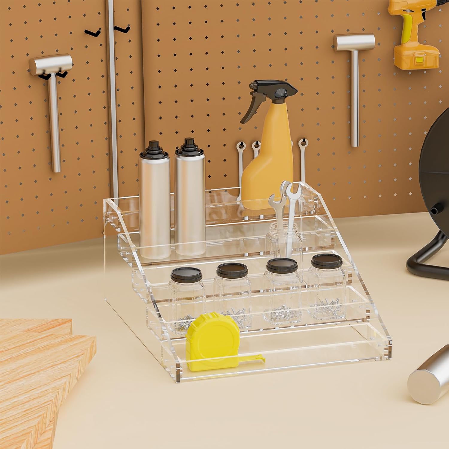 - MULTIPLE FUNCTIONS: The acrylic tiered spice racks allows you to easily locate and obtain the items you need; It can be used to storage and organize spice jars, sauces, bottles, medicine bottles, etc