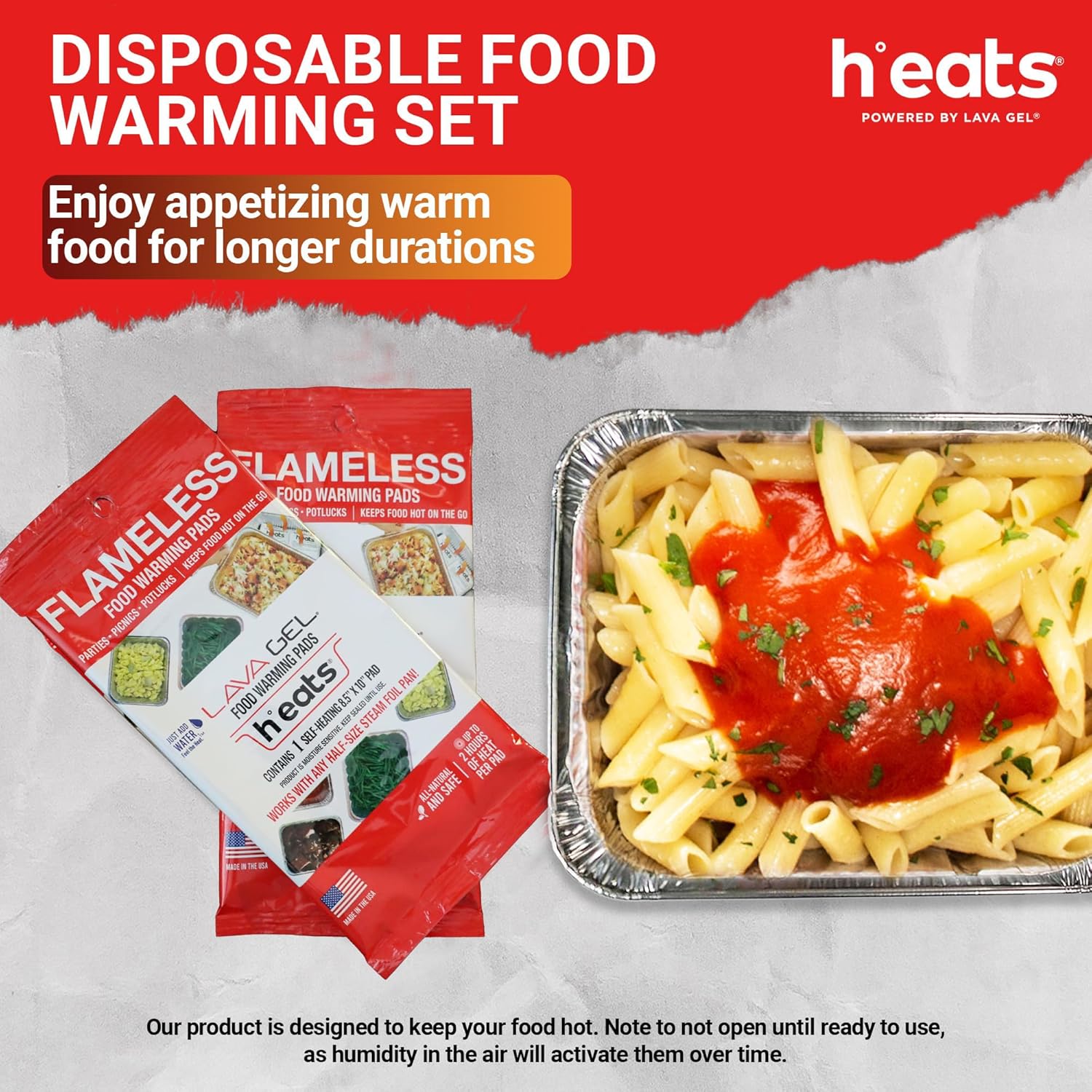 - Disposable Food Warming Pads: Available in packs of 6, our h°eats pads provide a convenient solution for all your food warming needs, whether for parties, potlucks, or daily kitchen use, ensuring your meals stay deliciously warm for extended periods.