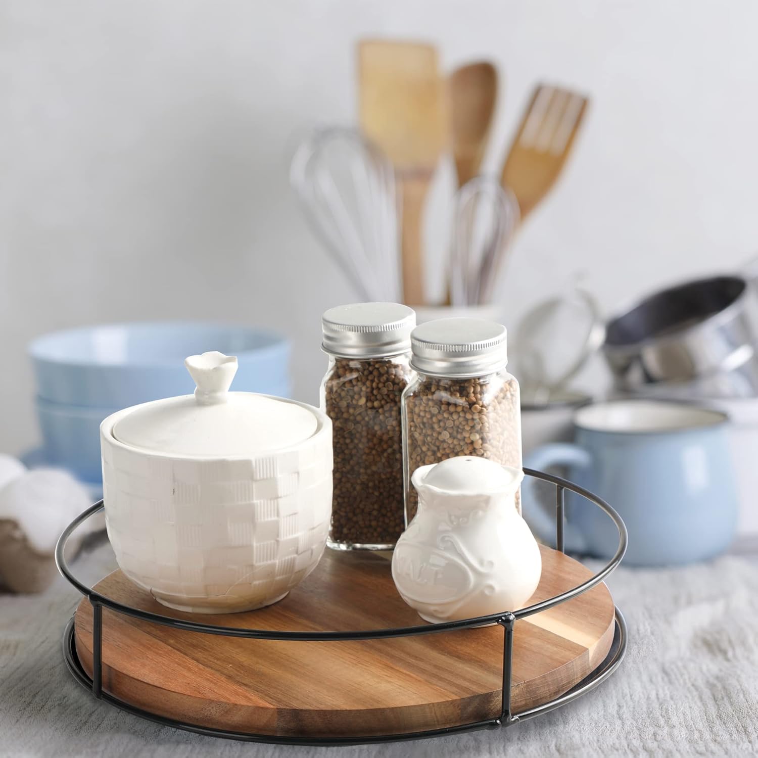 - Easy to Clean:Easy cleaning is important when it comes to lazy susan turntables for everyday use. For the material of acacia wood, simply wipe it with a damp cloth, do not use it in the dishwasher or soak it in water