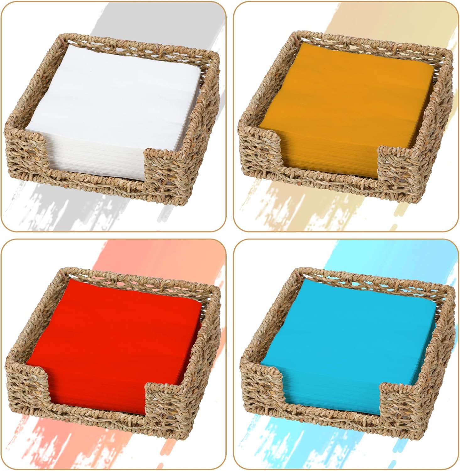 - ā [Size] The napkin holder is 7.8"L x 7.8"W x 2.8"H, size may vary within 1/4 inch due to handwoven design. Each napkin holder is about 0.5 lb and can hold 100 napkins, also can be a perfect choice for lunch, dinner, cocktail, table, counter, home kitchen, restaurant, bar, decoration, etc.
