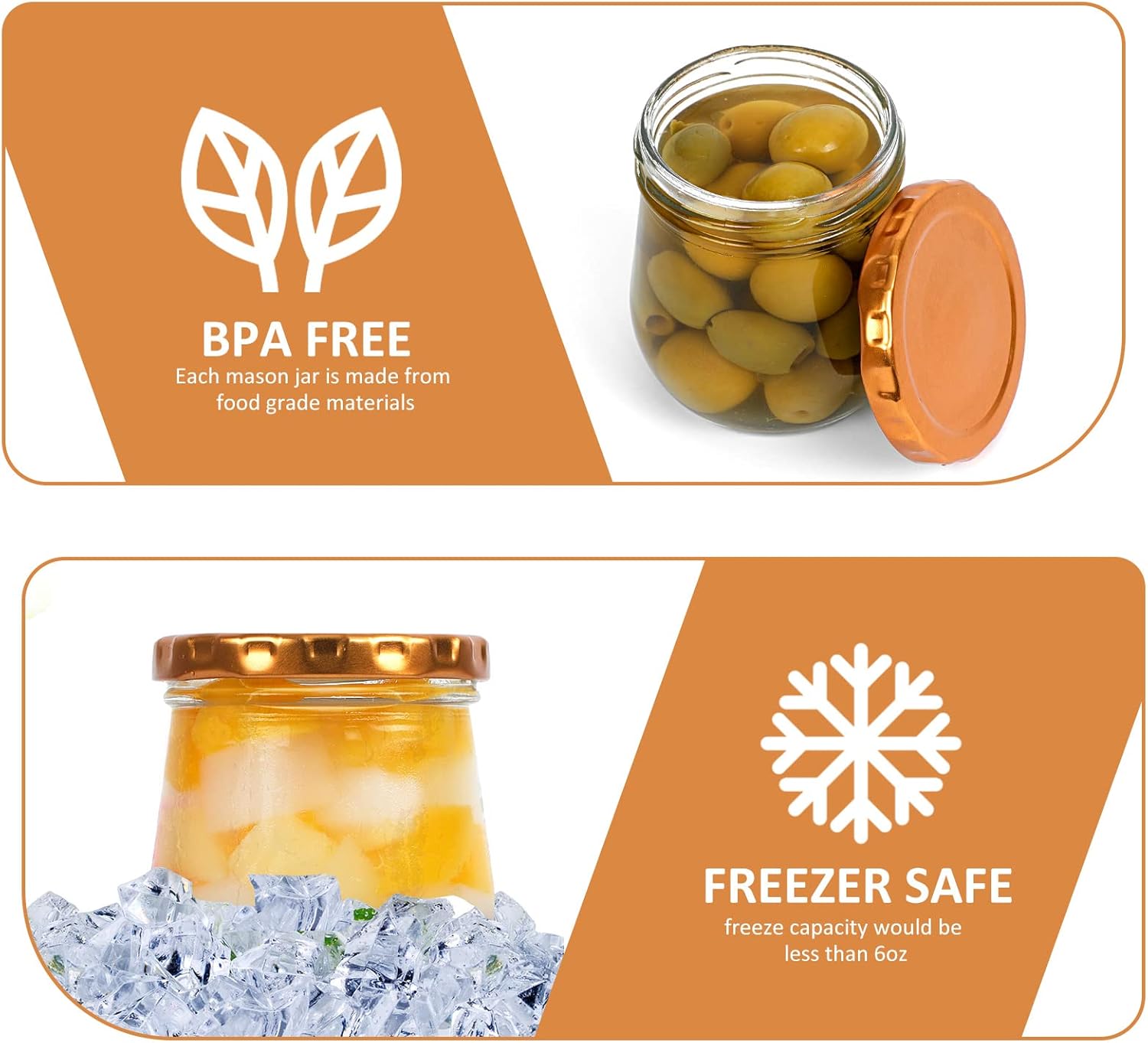 - HIGH QUALITY:Thick 6oz VERONES mason jars with food-safe, corrosion resistant lids - material is certified safety standards