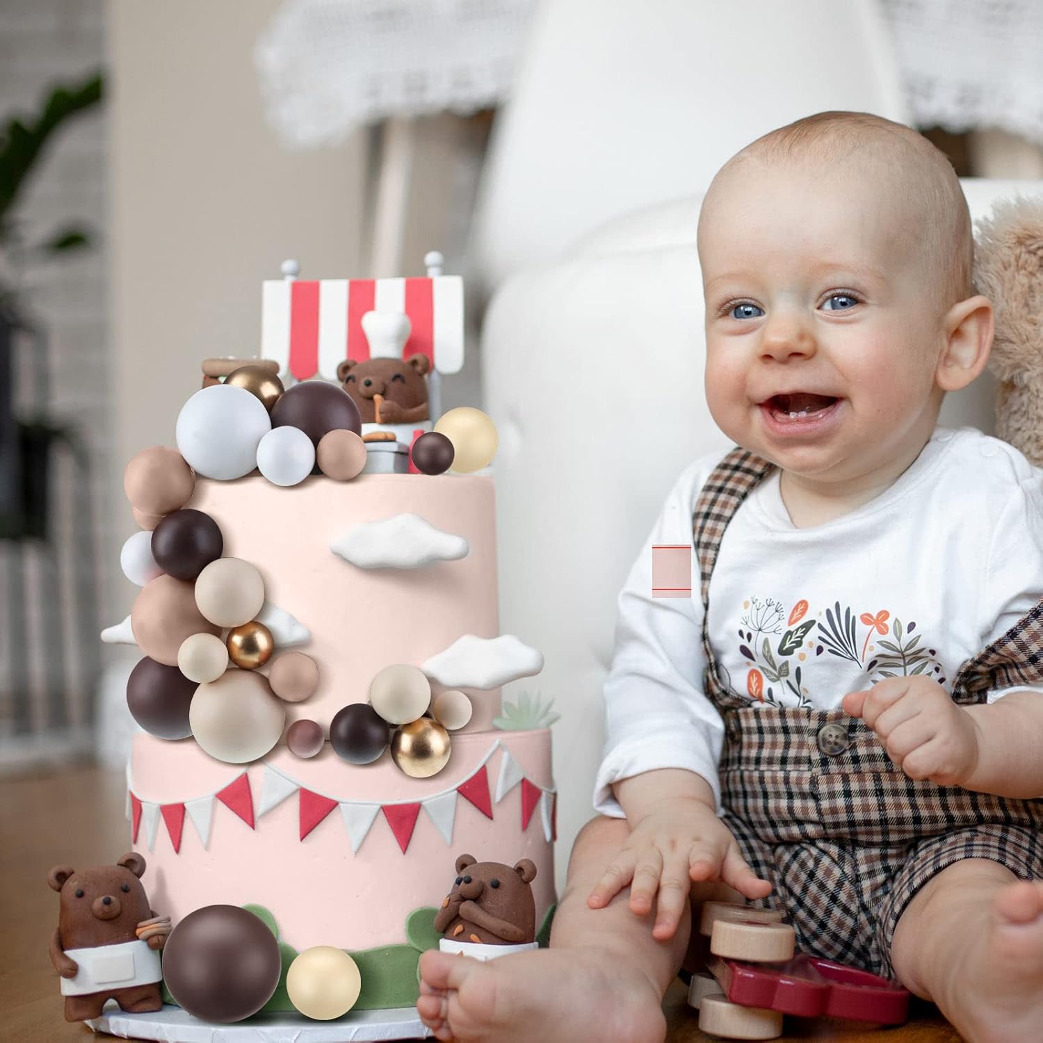 108 Pcs Balls Cake Topper DIY Cupcake Insert Foam Balloons for Cake Baking Wedding Anniversary Birthday Decoration(Brown Series,Multi Sizes)