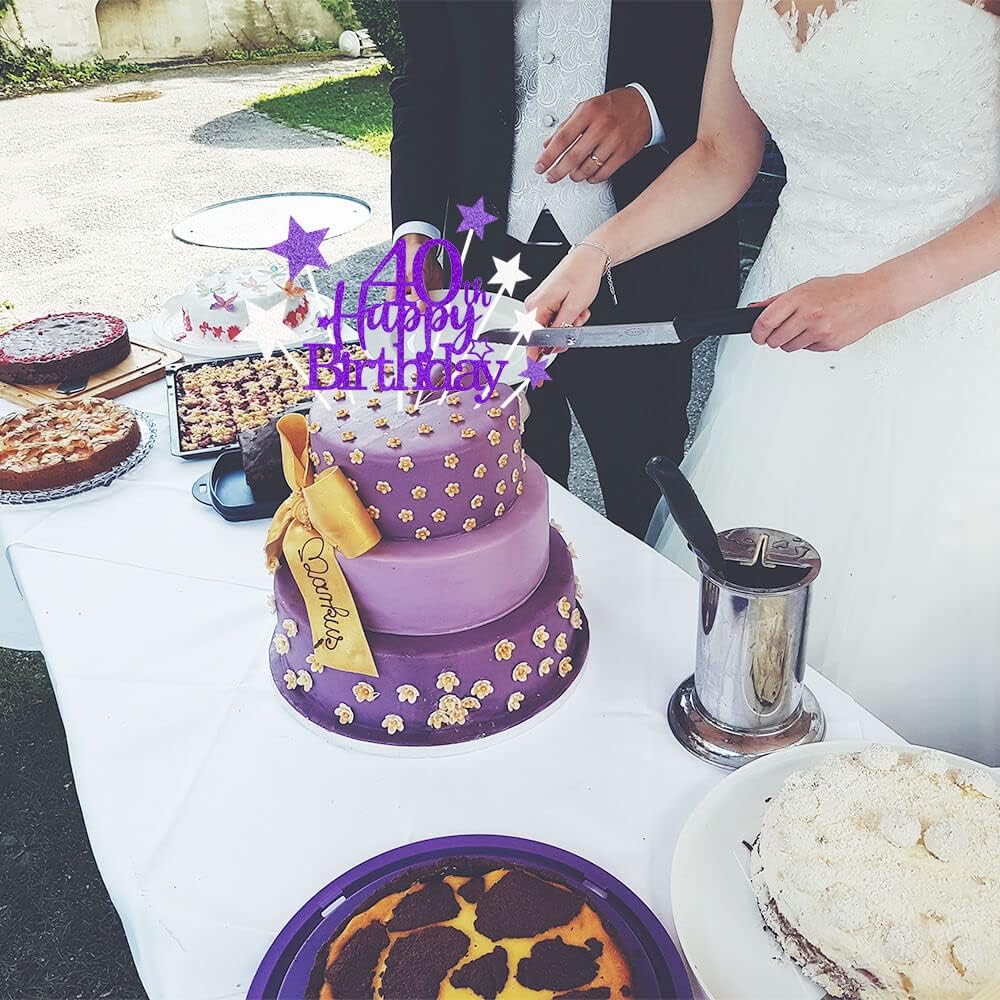 Glittery 40th Happy Birthday Cake Topper with Star,Personalised 40 Birthday Cake Toppers Party Decorations Party Supplies for Men Women Purple Silver