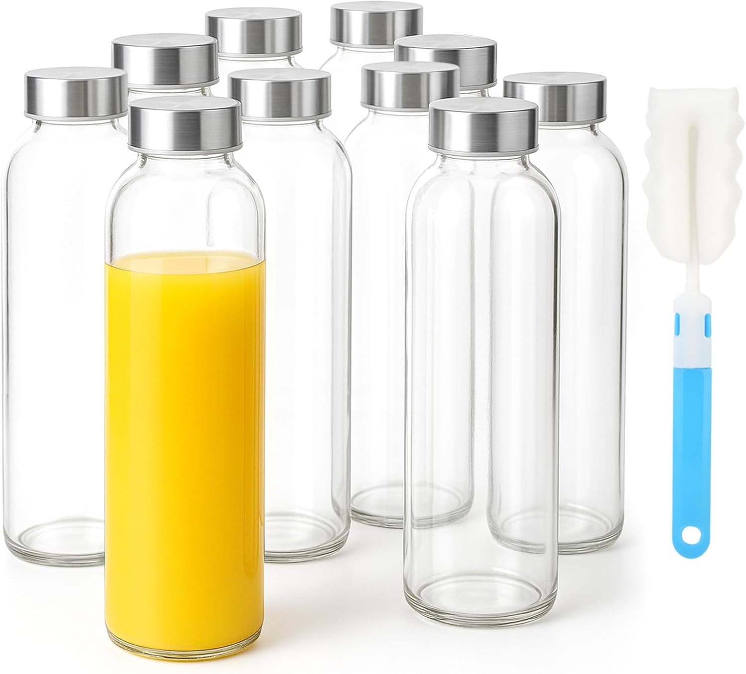 Sursip 24oz Glass Water Bottle Set of 10, Leak Proof Clear glass juice bottle for juicing, Reusable Drinking Bottles with Stainless Steel Lid, Beverage Storage Containers for Refrigerator-BPA Free