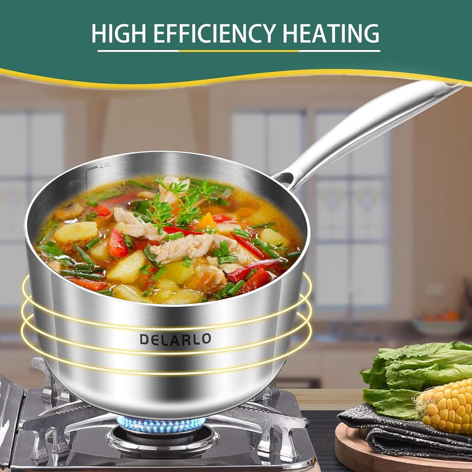 - Heavier and Thicker Than Ordinary 3 QT Saucepan with Lid with Lid! The Thick Fully Clad Three-Layer Steel Material, with The High Side and Round Rim Design, Enables Delarlo 3Qt Sauce Pan with Lid to Have Quick Response and Durable Performance, Making The Soup Less Likely to Spill Over. Even After Hours of Boiling, 3 Quart Pot Can Still Maintain Its Performance. With The Lid on, It Remains Warm For A Long Time After Being Cooked. Sauce Pan 3QT Suitable for Making Anything Like Candy, Sauce, Butter, and Milk, Syrup Etc