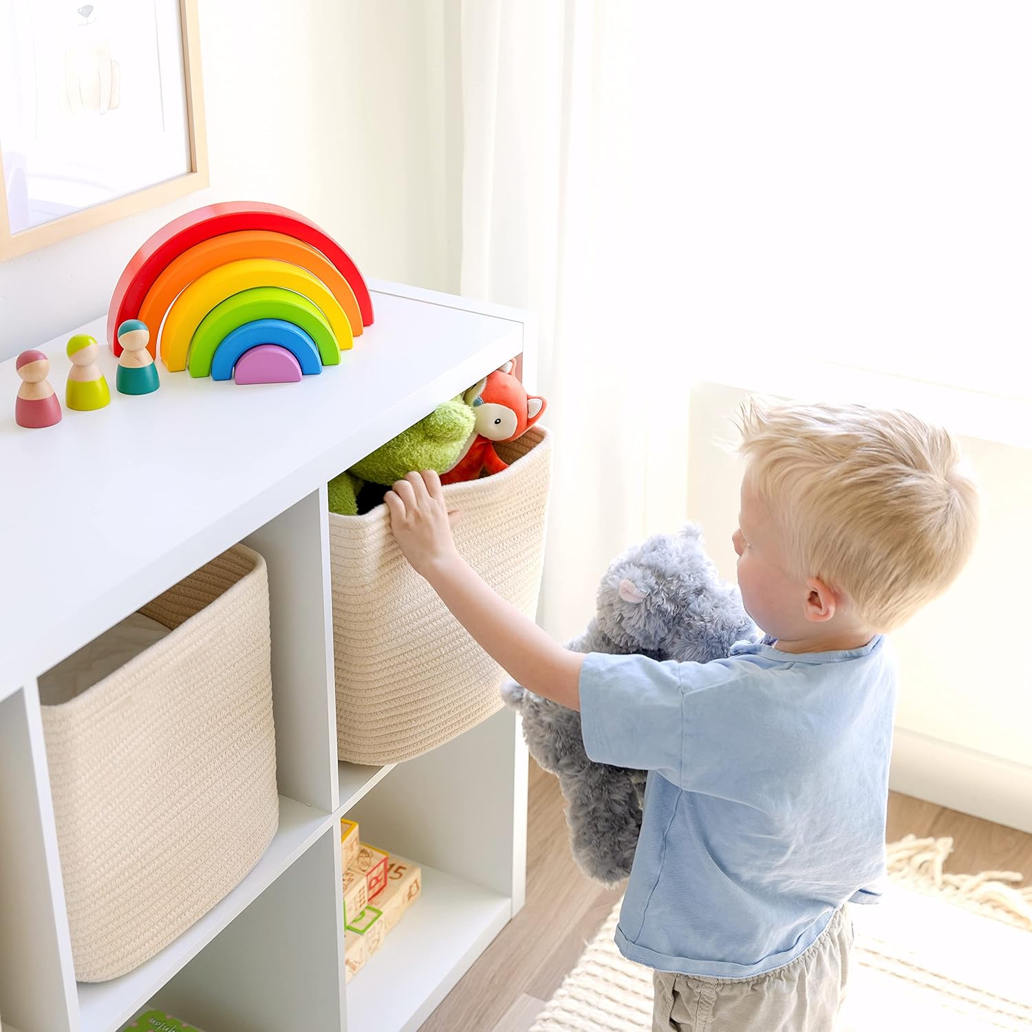 - Safe, Natural Cotton Storage Basket: Crafted from the highest quality material in the market, our toy bins are oh-so-sturdy and ready to take on little humans with a knack for nom-ing. They’re 100% safe, so you can rest easy if teething toddlers take a nibble.