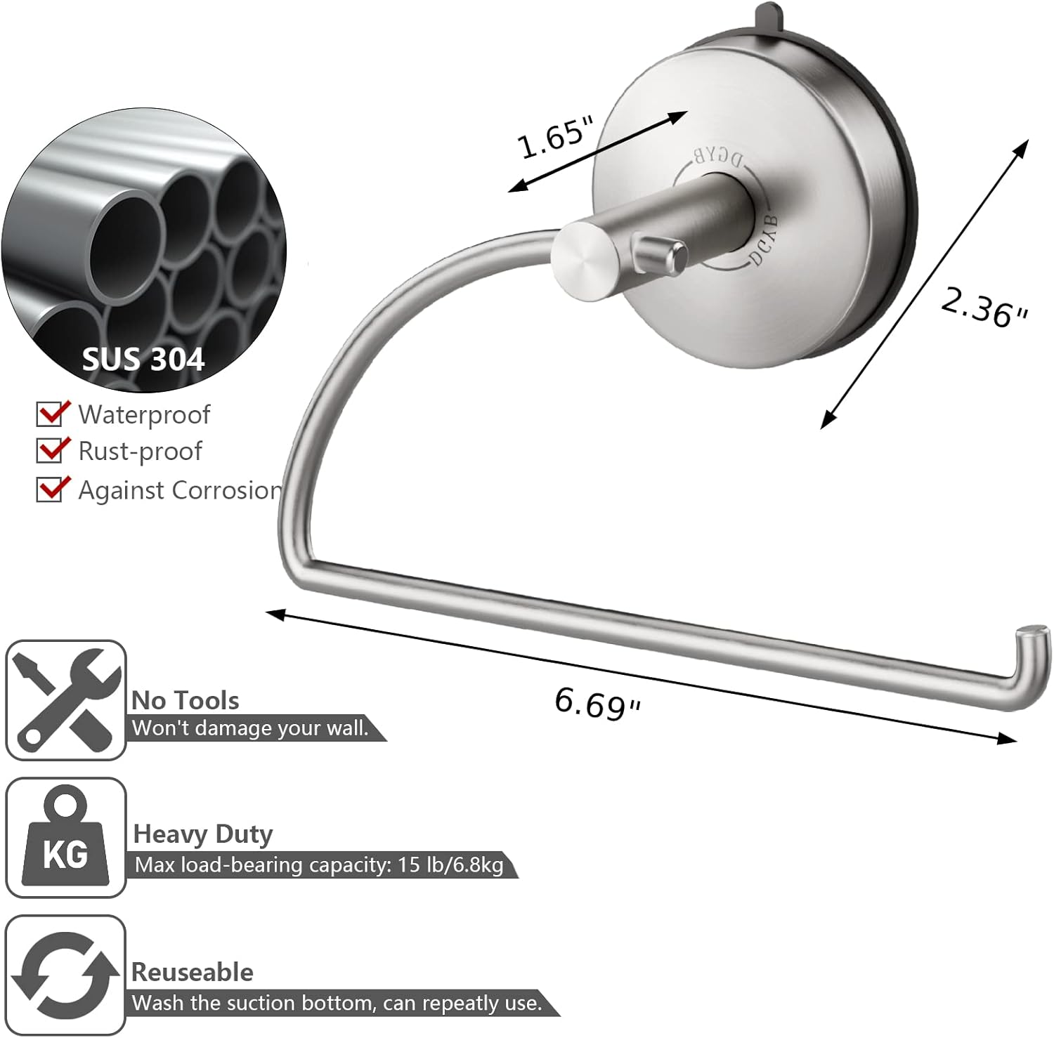 DGYB Suction Cup Hand Towel Ring Brushed Nickel Hand Towel Holder for Bathroom Wall SUS 304 Stainless Steel Kitchen Towel Hanger