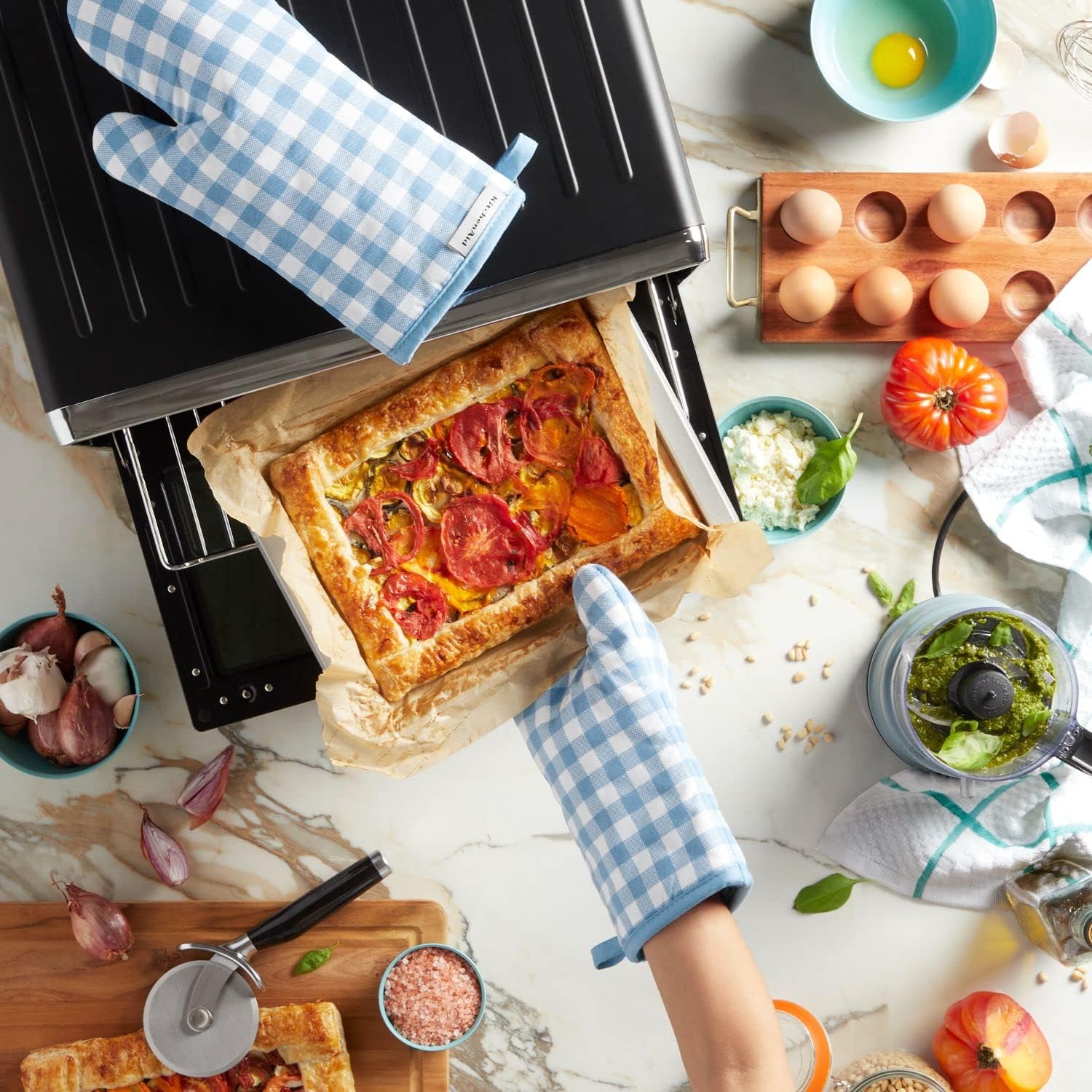 KitchenAid Gingham Oven Mitt 2-Pack Set, Blue Velvet, 7"x13"