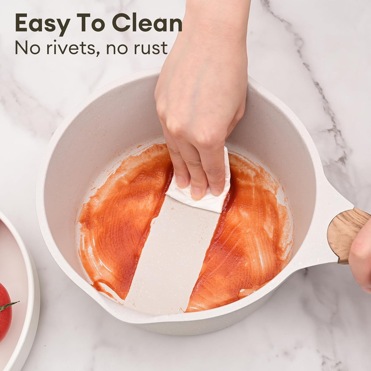JEETEE 2 Quart Sauce Pan with Lid, Non Stick Small Pot with Coating, Masterclass Cookware Sauce Pot for Cooking, PFOA/PFOS Free(Beige)