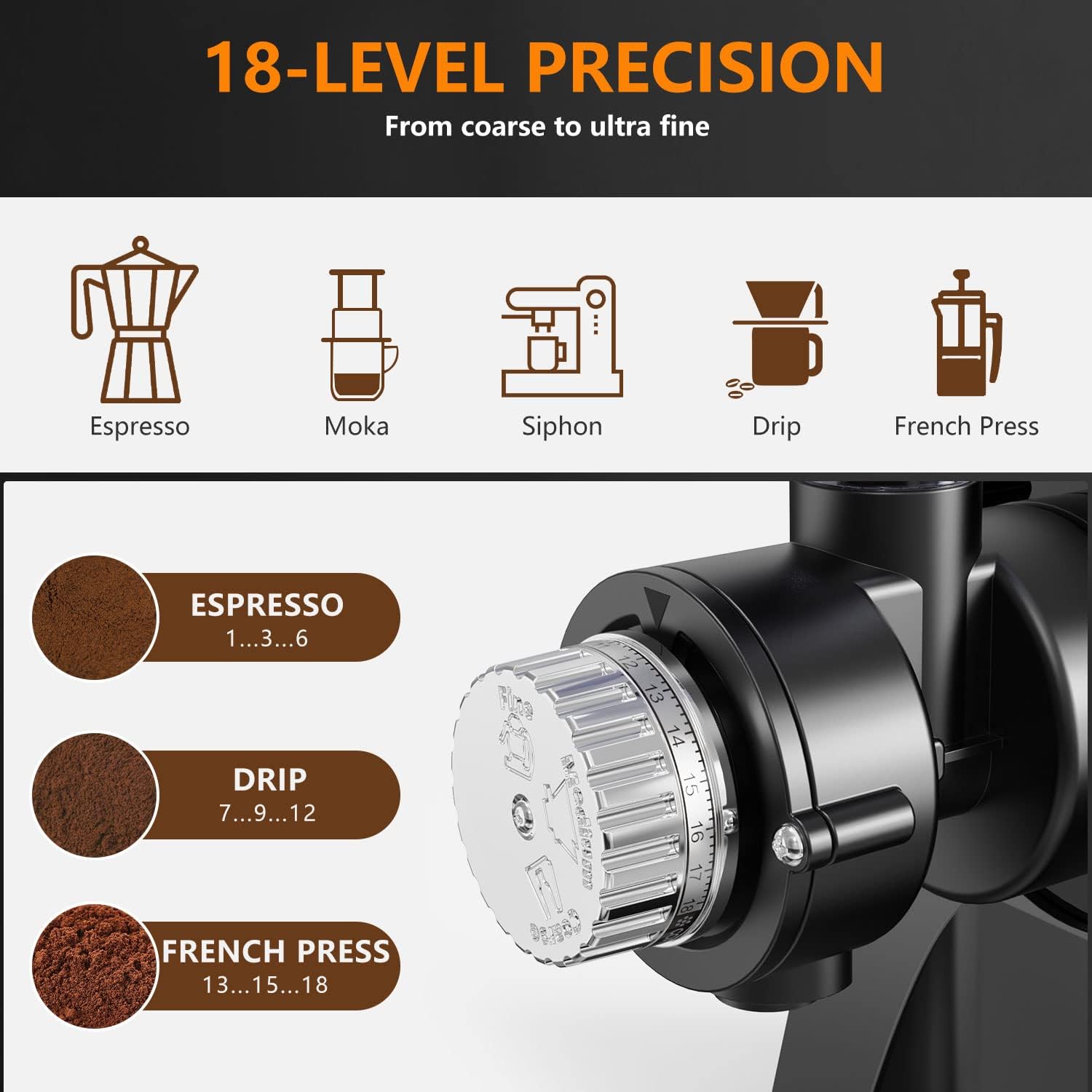 - SIMPLE USE - One button disassembly, easy to switch 2 components. Pour in the coffee beans, 18 levels of precision adjustable, Press Grind button, even ground coffee falls vertically. Put in proper-size ingredients, press Start, you can extract the original juice immediately. If clogged, turn off the juicer, press Reverse button for 2-3s. All the removable juicing components are dishwasher safe, or rinse with water to clean.