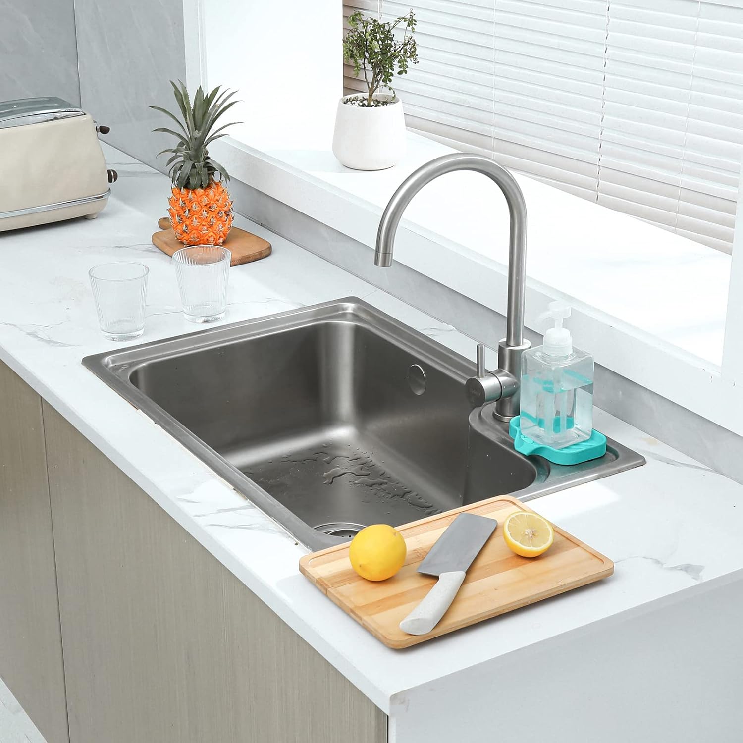 - Food Grade Silicone: The soap dispenser tray is made from high-quality food grade silicone, so it's safe for use in the kitchen or bathroom