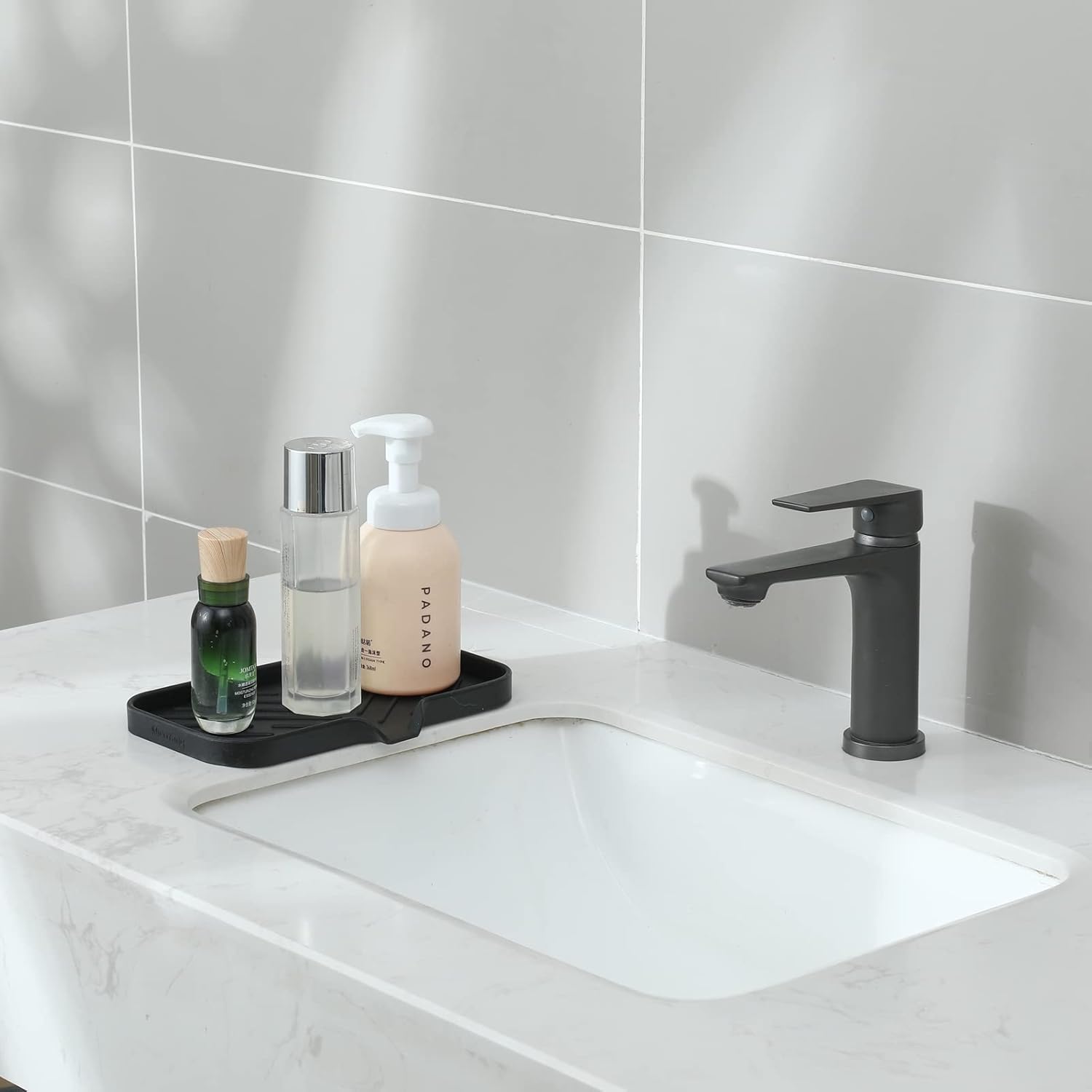 Silicone Bathroom Soap Dishes with Drain Spout-Bathroom and Kitchen Sink Organizer,Sponge Holder,Dish Soap Tray,Perfect for Dispenser,Scrubber,Bottle,Cup on Sink or Counter-Black 9.6"×5.3"