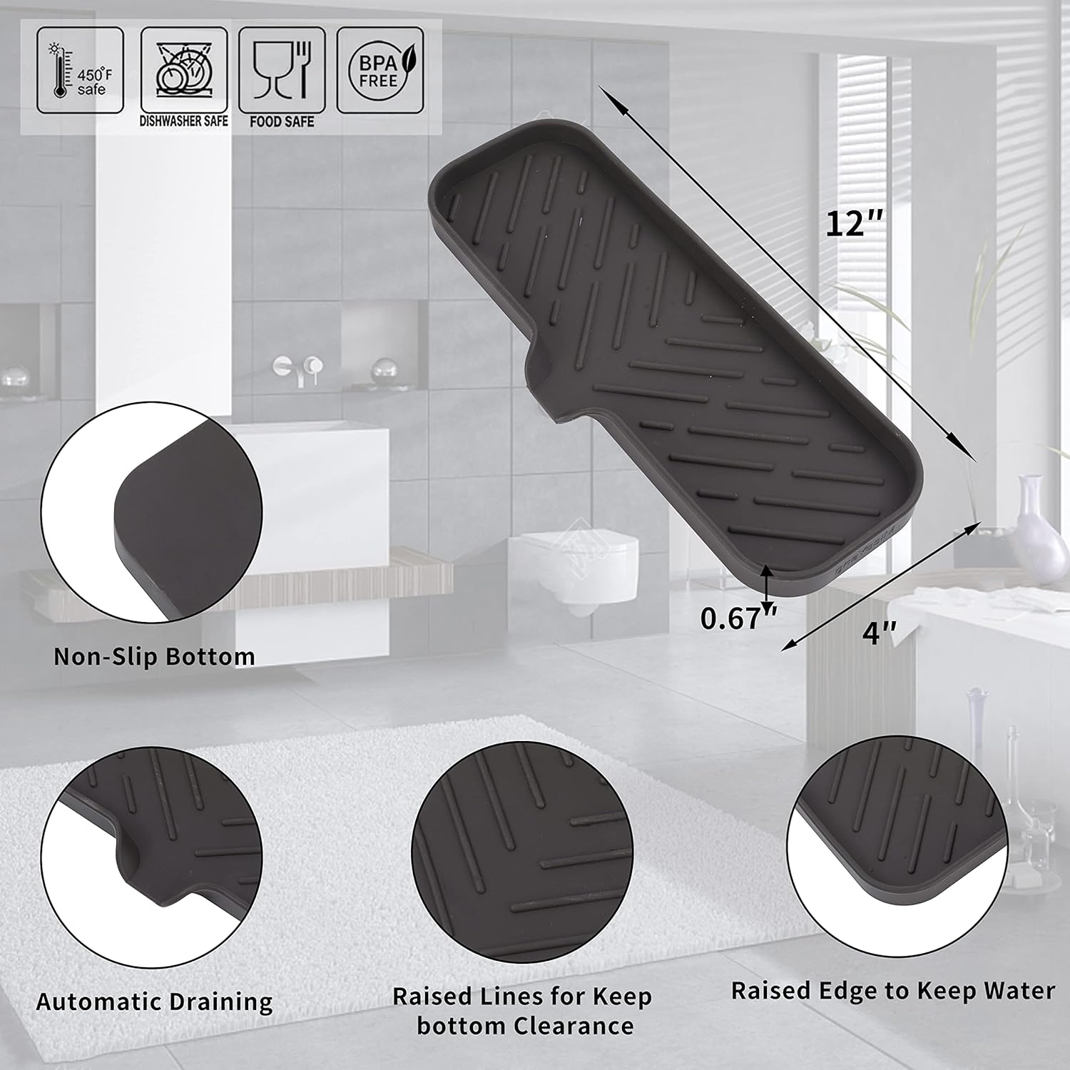 Silicone Bathroom Soap Dishes with Drain Spout-Bathroom and Kitchen Sink Organizer,Sponge Holder,Dish Soap Tray,Perfect for Dispenser,Scrubber,Bottle,Cup on Sink or Counter-Coffee 12"×4"