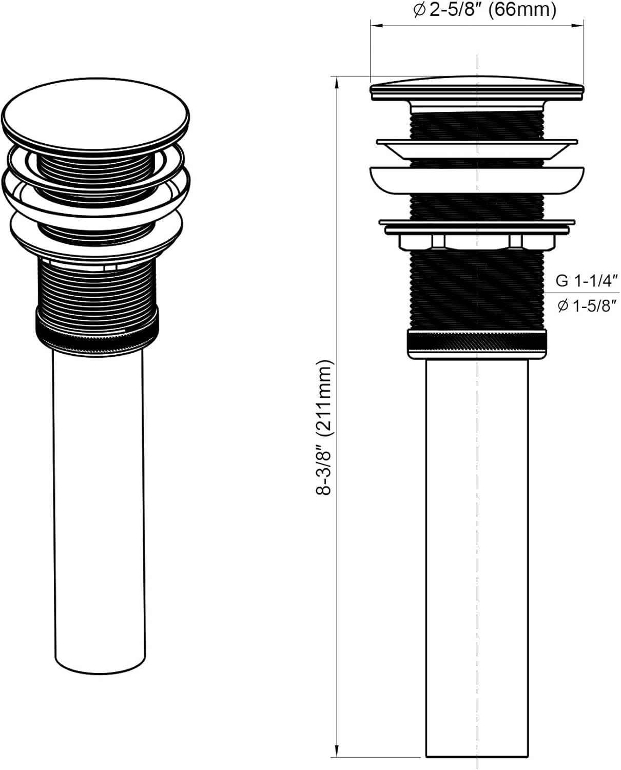 - MEASUREMENTS: Fits any bathroom sink with a standard 1-3/4" drain opening. Cover diameter 2-5/8", Height 8-3/8"