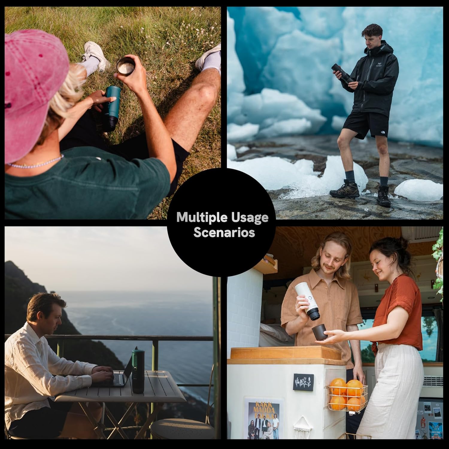- ăPREMIUM BATTERY CAPACITY ă: Travel espresso maker comes with 7500mAh battery, compatible with 10-15 watts USB-C car chargers for universal charging, which supports up to 5 hot shots with 1.7oz 77°F room temperature water or 200+ shots with hot water.