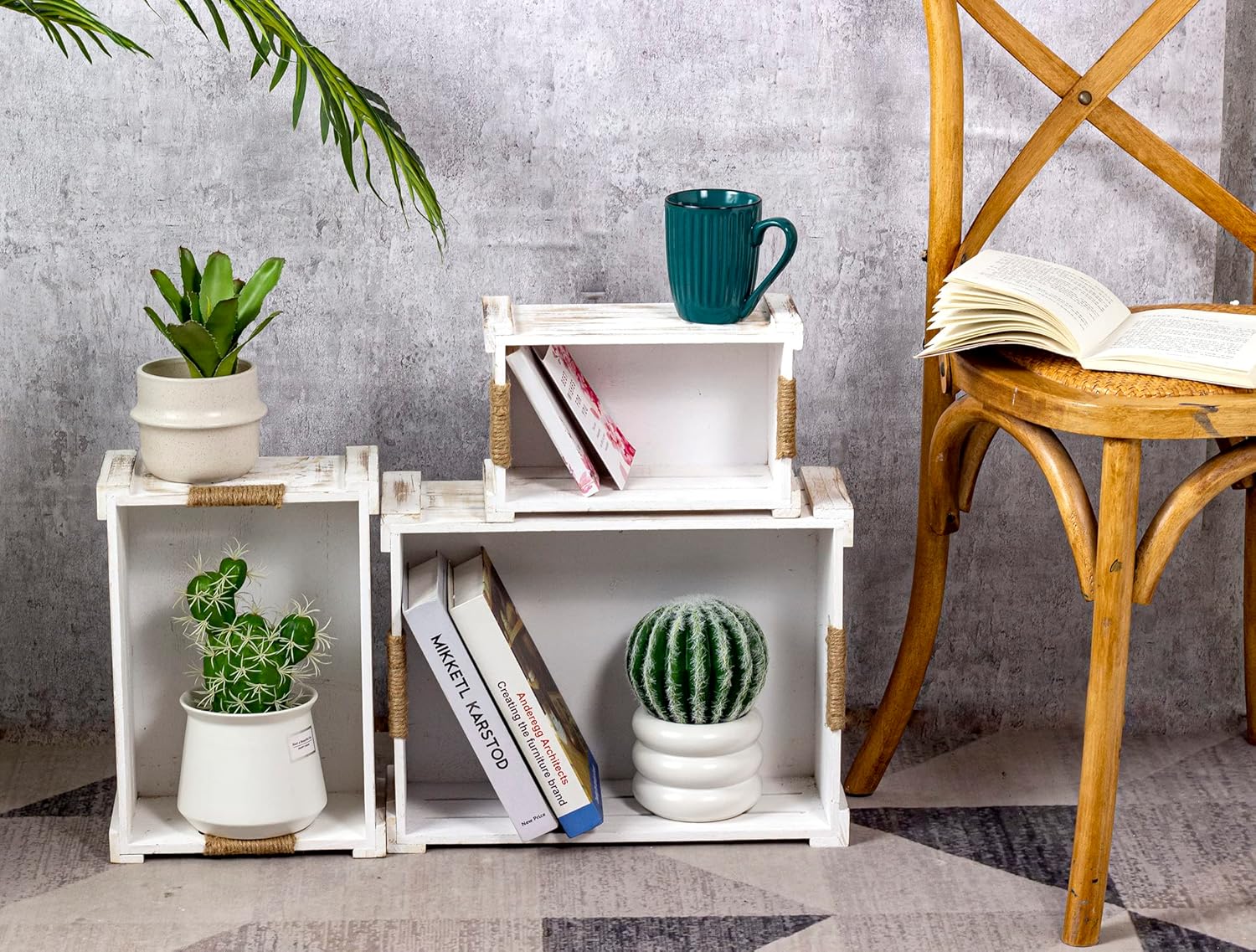 - UNIQUE DESIGN – The rectangular nesting crates have natural wood grain and knots on the surface, so each crate is unique, the farmhouse jute rope cutout handles make them easy to carry around.