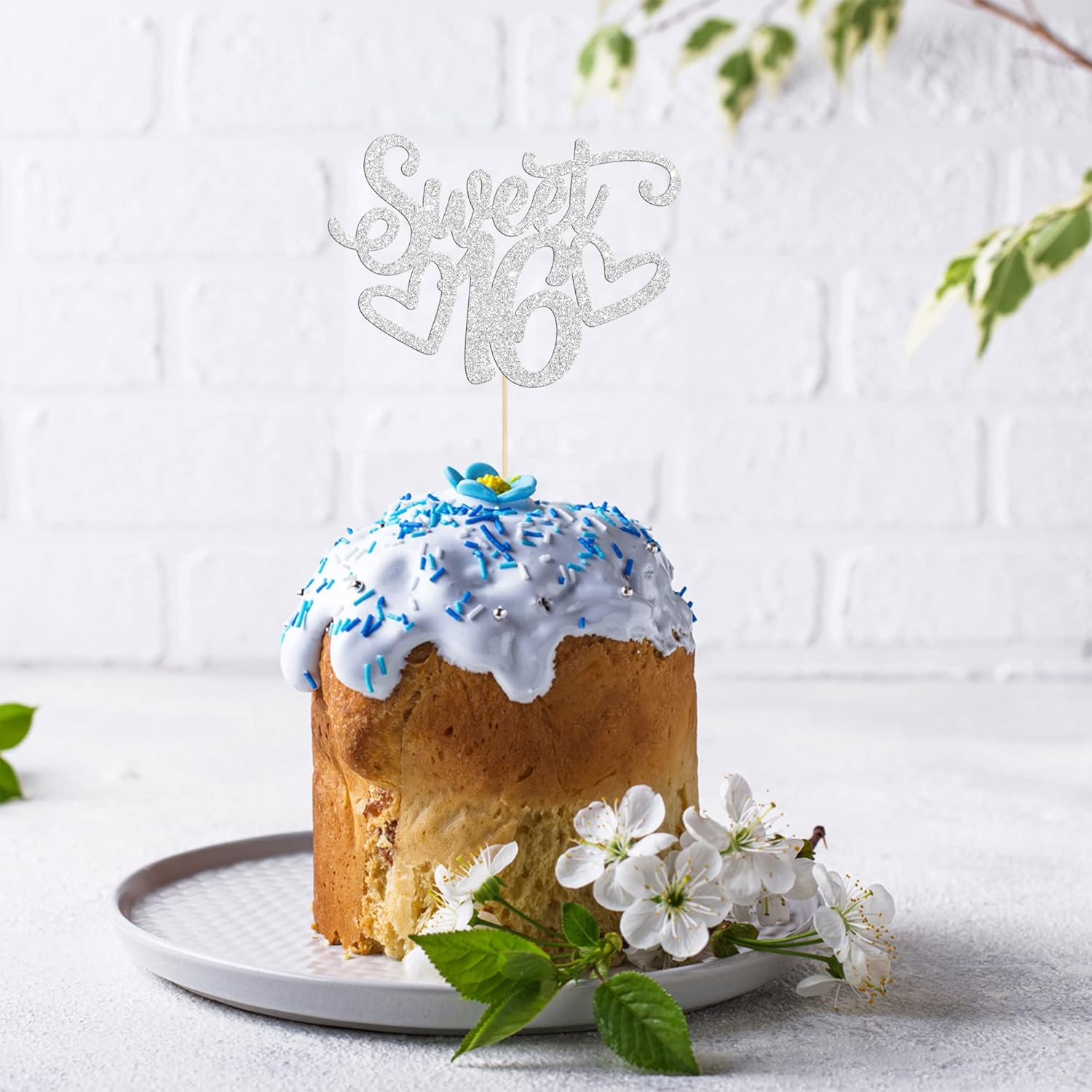 - ๐๐This Sweet 16 Cake Topper is so cute and good for 16th birthday party, 16th anniversary party cupcake decorations. They can make your cupcake more attractive and bring the fun to your party. You can also apply them for ice cream, fruits, cookies and other desserts.