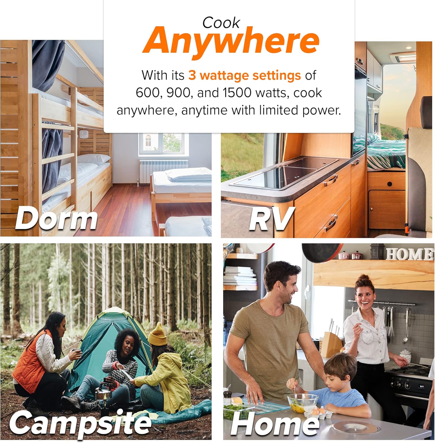 - PORTABLE COOKING CAPABILITIES – The PIC Gold lets you cook outside the kitchen. With a lightweight, compact design, you can take the PIC virtually anywhere. As long as you have access to an electric outlet, you can cook in your backyard, in the RV, at the campsite and so much more. You can even adjust the wattage, selecting from 600, 900 or the default 1500 watts with the press of a button.