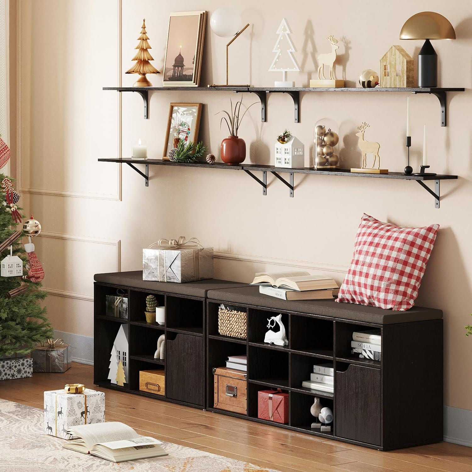 DINZI LVJ Long Wall Shelves, 47.3Inch Wall Mounted Shelves Set of 2, Extra Large Wall Storage Ledges with Sturdy Metal Brackets for Living Room, Bathroom, Bedroom, Kitchen, Espresso