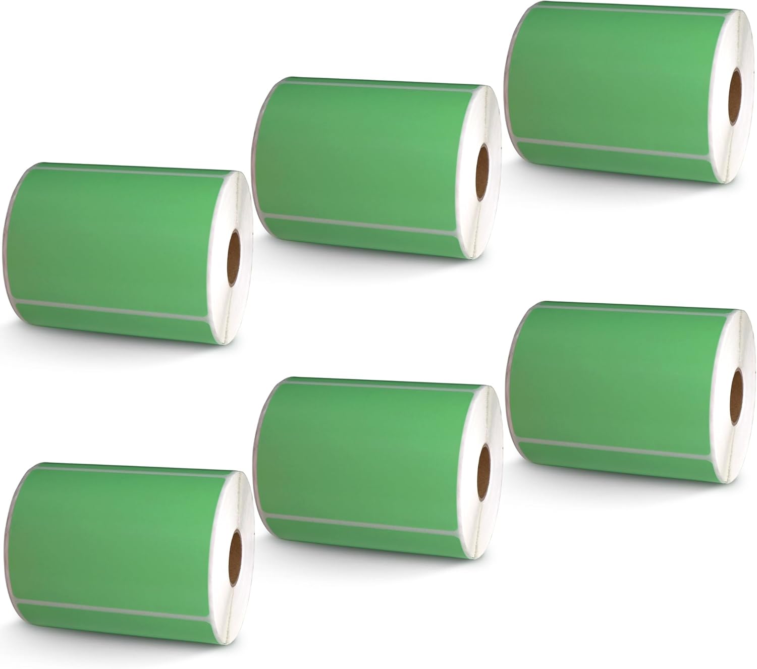 BETCKEY - 4" x 3" Shipping & Multipurpose Labels Compatible with Zebra & Rollo Label Printer,Premium Adhesive & Perforated[Green, 6 Rolls, 3000 Labels]