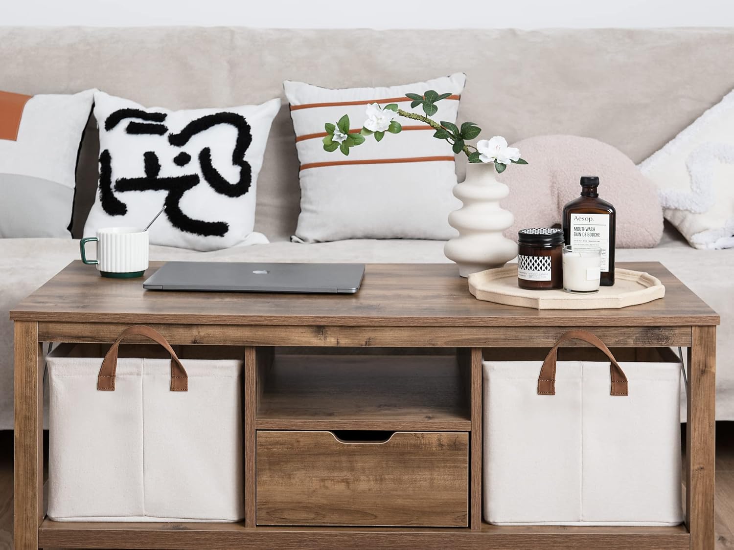 - The sturdy storage basket are made of durable fabric reinforced with lightweight insert board and metal frame, supporting a weight of up to 30 pounds. Clean with a soft cloth with light soapy water when needed.