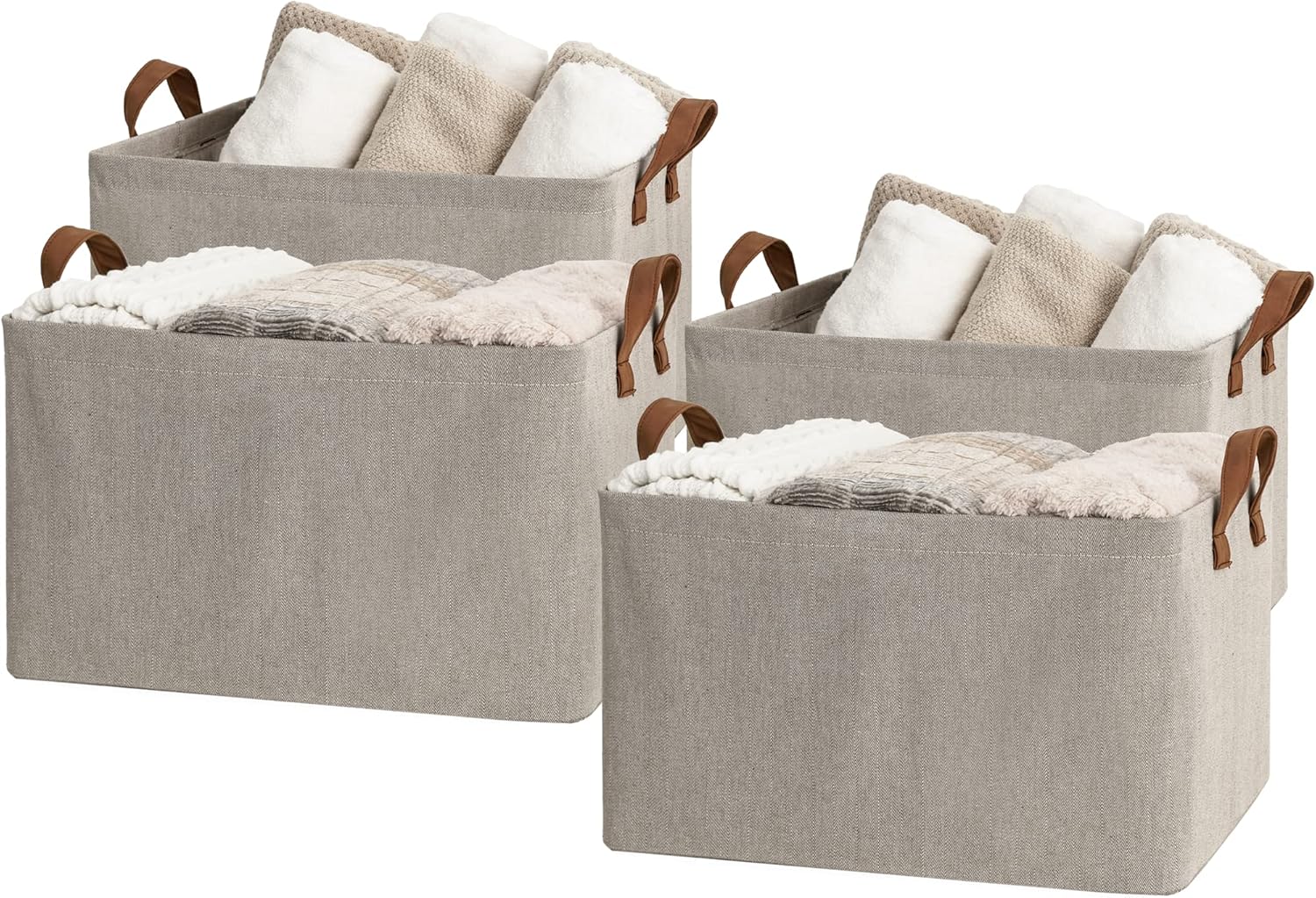 - Feature a modern design and 2 reinforced sewn-in handles, making these baskets easy to carry.