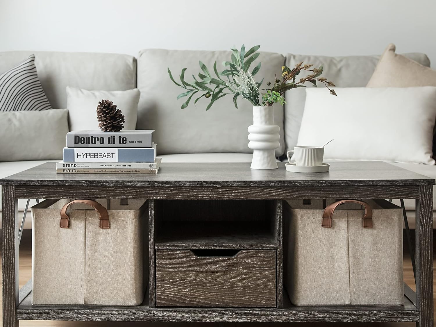 StorageWorks Storage Baskets for Shelves with Metal Frame, Organizing Bins, Fiber Shelf Baskets, Brown and Beige, 4-Pack