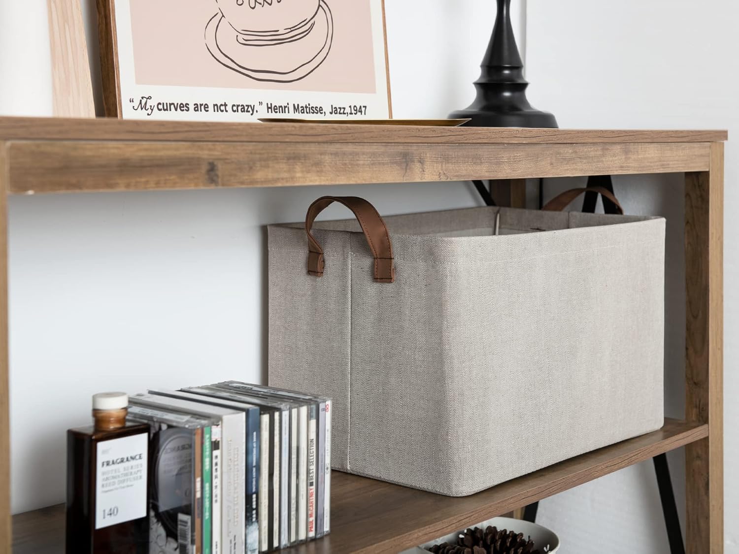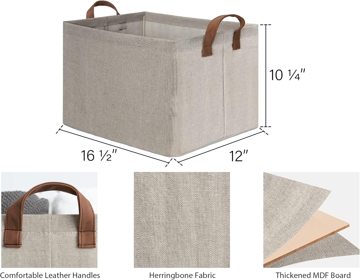 - The sturdy storage basket are made of durable fabric reinforced with lightweight insert board and metal frame, supporting a weight of up to 30 pounds. Clean with a soft cloth with light soapy water when needed.