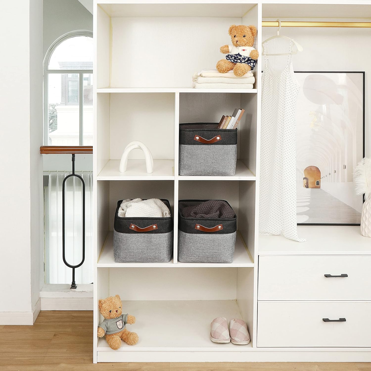 - Decorative Fabric and Vegan Leather – These versatile storage baskets for organizing your everyday life are made with a thick, high-quality fabric and fitted with leather handles to add a stylish touch to a living room, bedroom, office, or personal space.