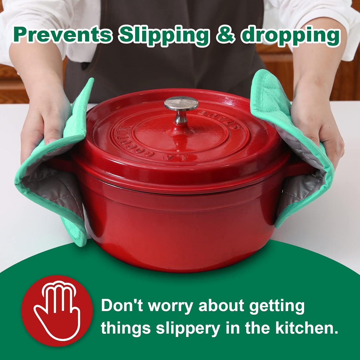 - PROTECT YOU FROM HEAT - The construction of these pot holders for kitchen helps to protect your hands and arms from the heat of the oven. Do not use pot holders in a hot oven or over an open flame.