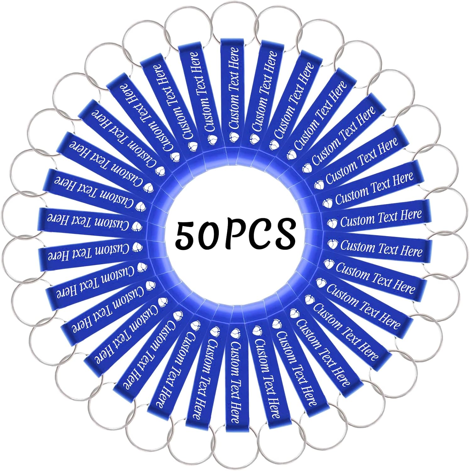 50PCS Personalized Bottle Opener Keychain Bulk Custom Beer Bottle Opener with Logo Text Engraved Wedding Bottle Opener Favors Customized Gifts for Guests Baby Shower Birthday Party-Blue