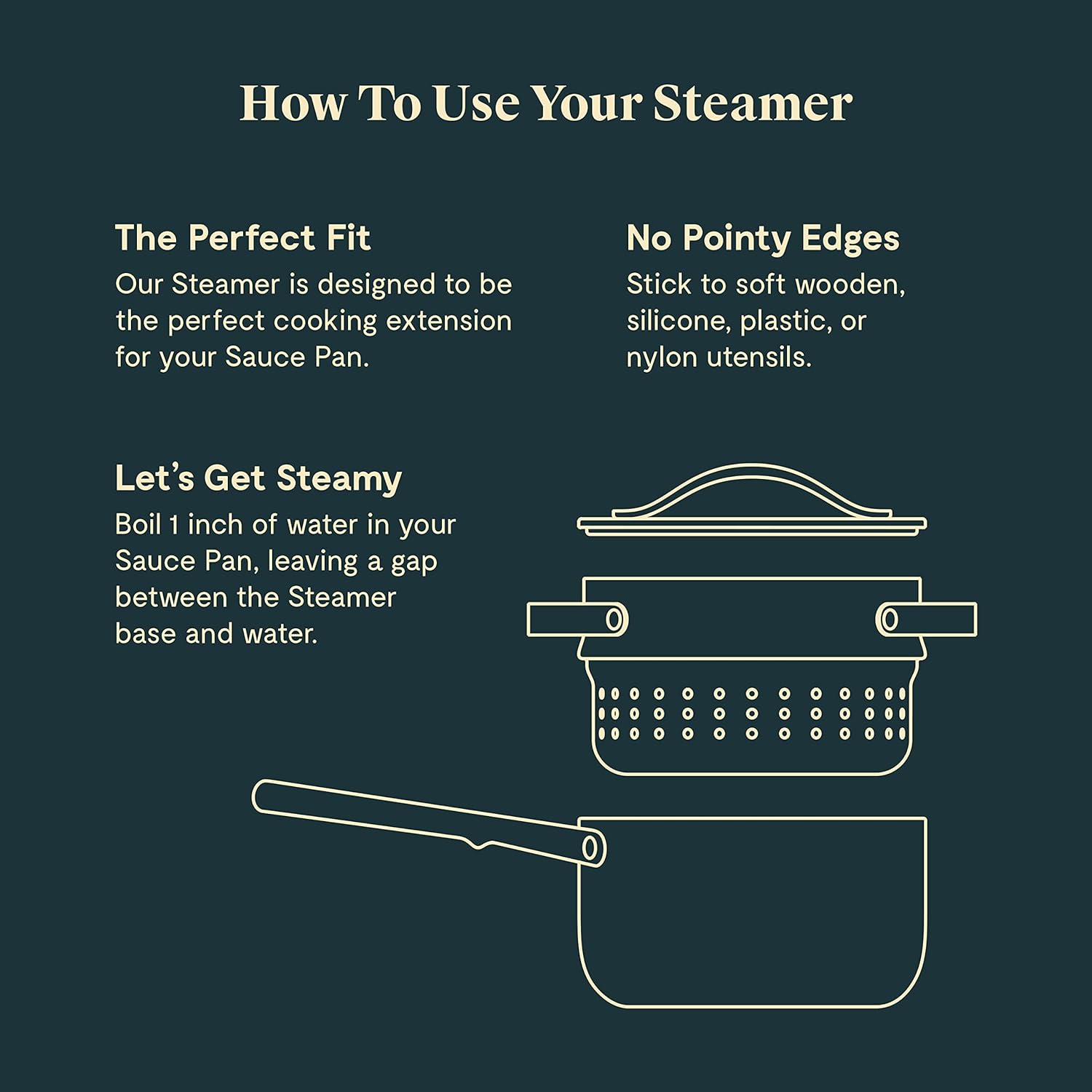 Caraway Steamer - Stainless Steel Steamer with Handles - Non Stick, Non Toxic Coating - Steam Veggies, Seafood, and More - Compatible With Our Dutch Oven or Sauce Pan - Small