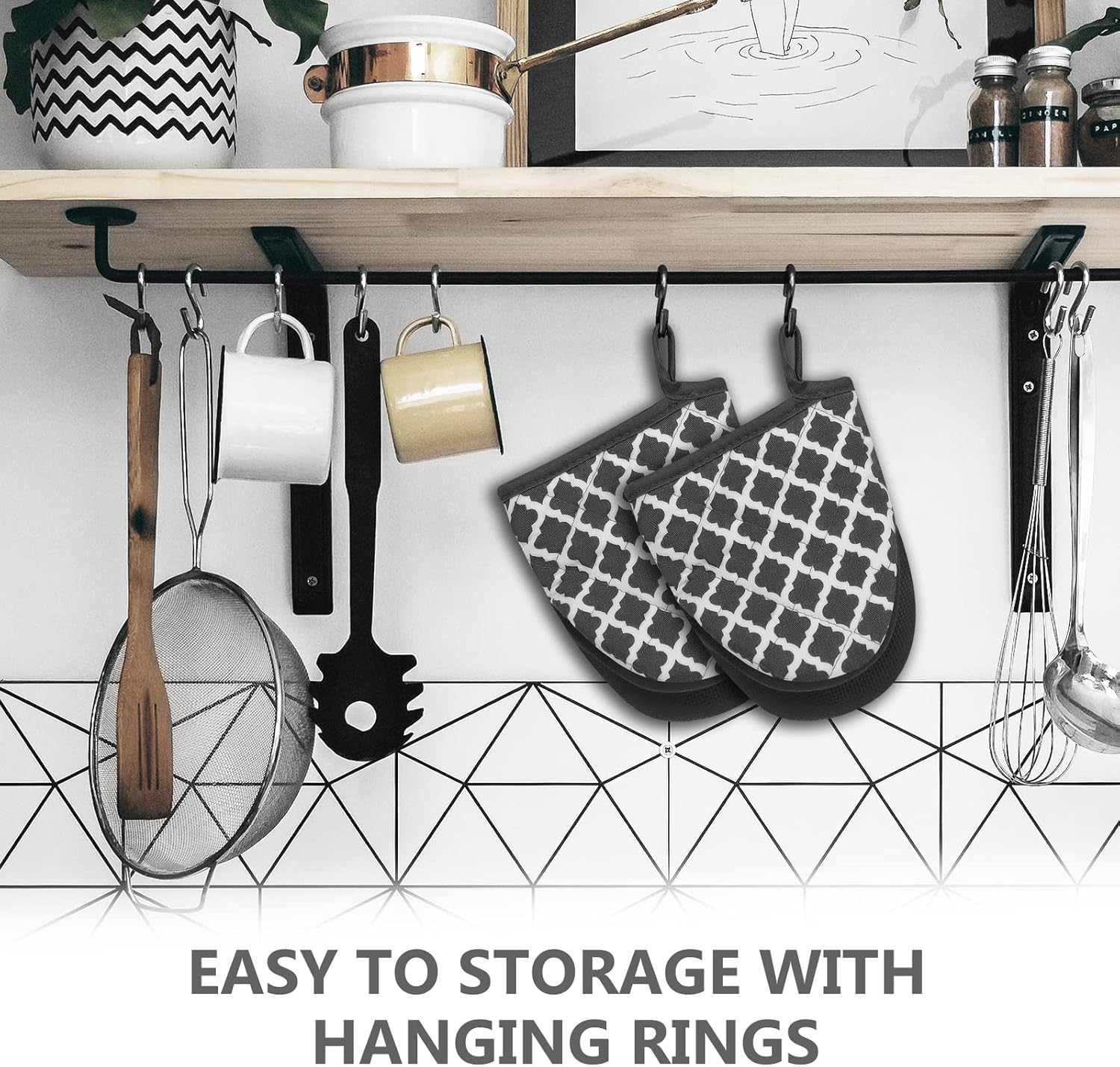 - 【Heat-Resistant】- Made of durable neoprene and cotton, offering protection up to 500°F/260℃. They will protect your hands from heat, steam and grease. These mitts measure 5.5 inches x 7 inches, perfect for small hands.