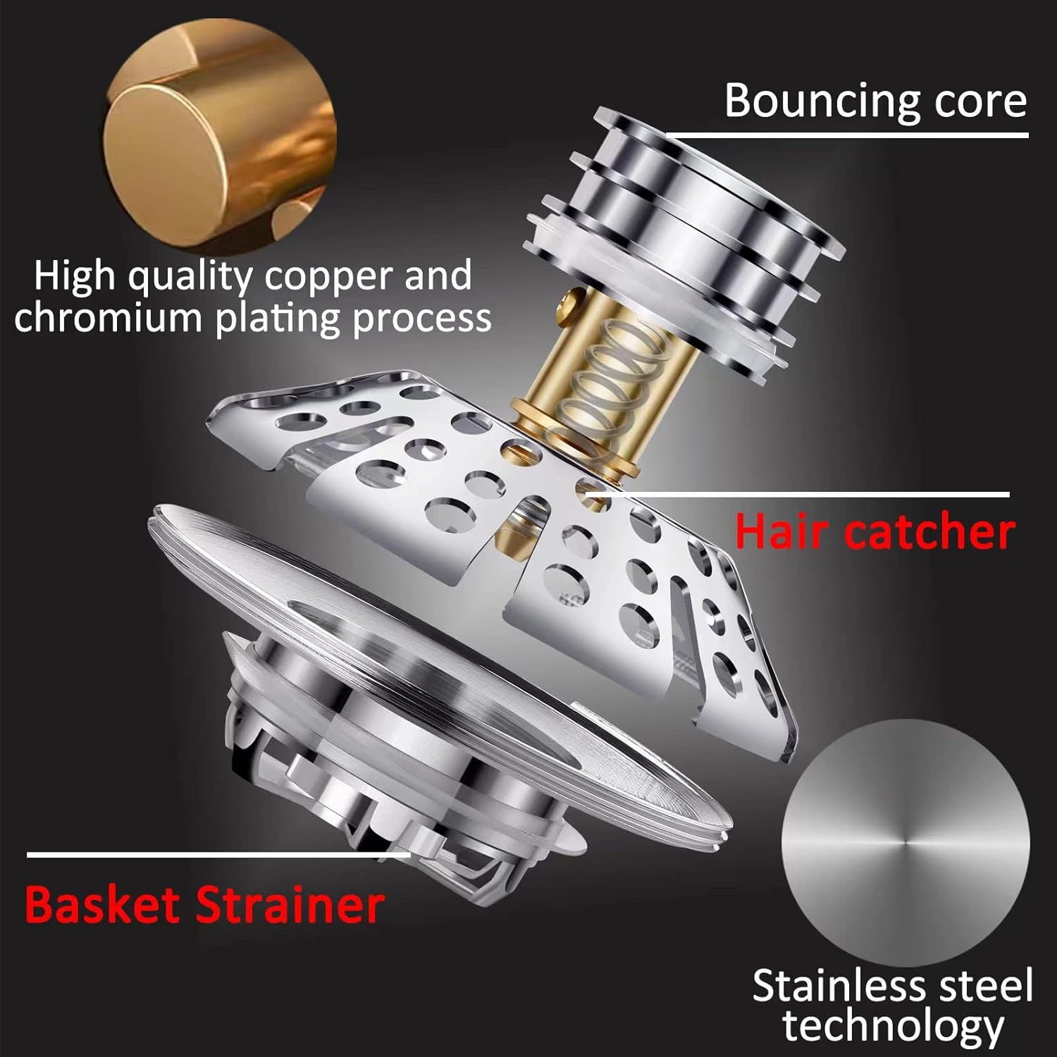 - [High Quality] Bathtub strainer tub hair drain catcher made of thick stainless steel ,pop-up core made of chrome,AzWzz bath tub drain plug made of copper, with bright silver plating polishing process. Rust resistant, durable, easy water cleaning, and can be used for many years.