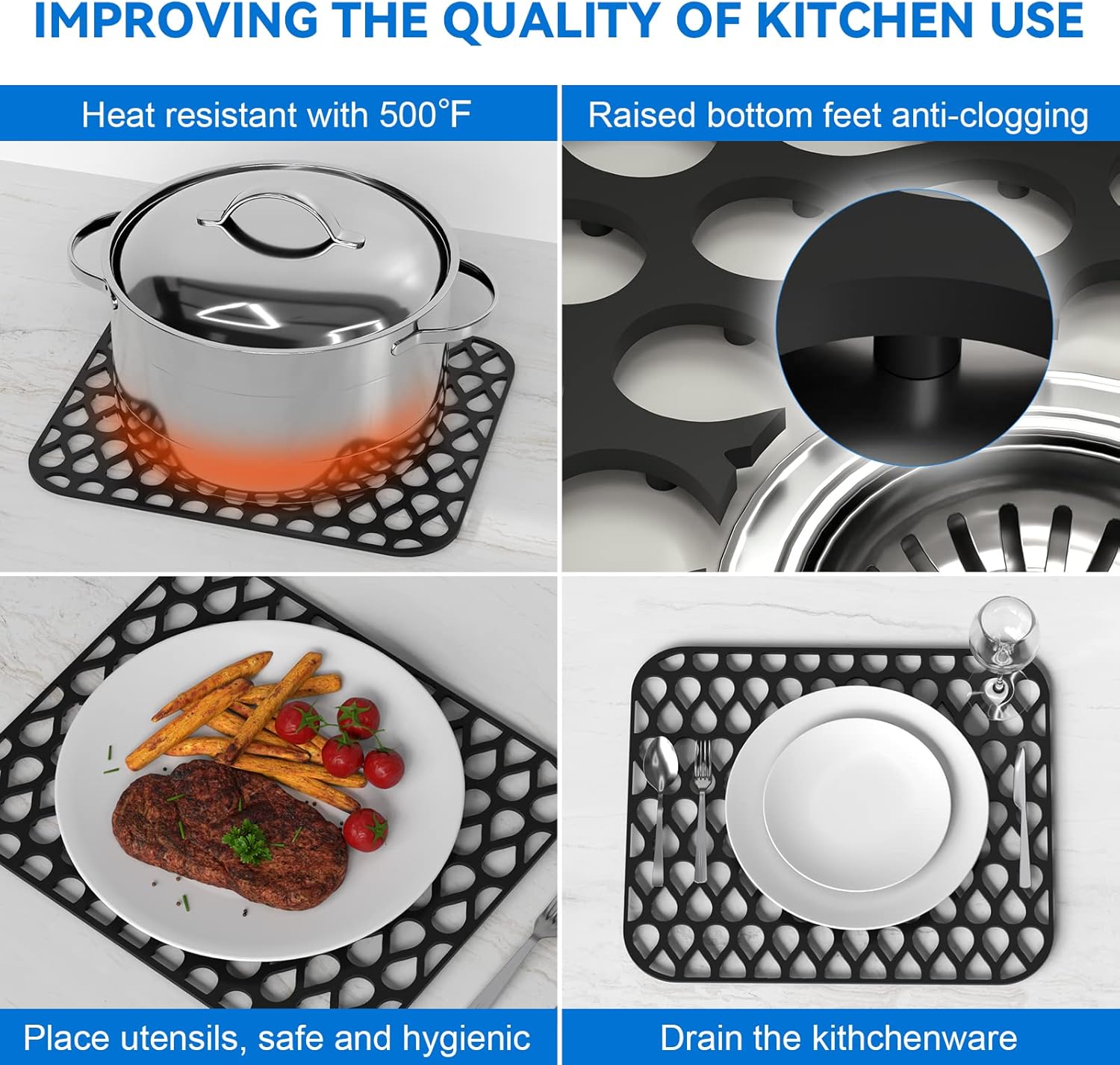 - Multiple Creative Uses - In addition to being a perfect kitchen sink protector, our sink mat for the bottom of the kitchen sink can also be used as a heat-resistant mat for the cooking prep area, a baking sheet mat, a sink mat, or even a pet dish mat. It brings your creative life to life.