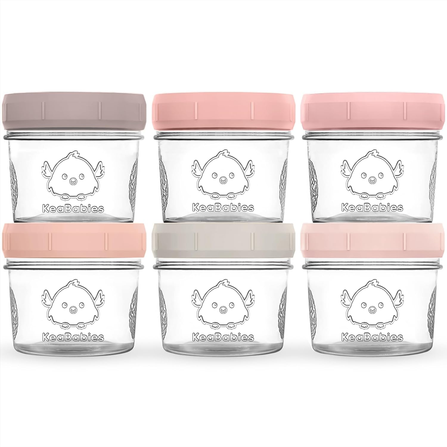 KeaBabies 6pk 4oz Glass Baby Food Containers with Lids - Leak-Proof, Microwavable Small Glass Jars, Baby Purees & Toddler Snack Storage Containers, BPA-Free, Dishwasher & Freezer Safe (Roseate)