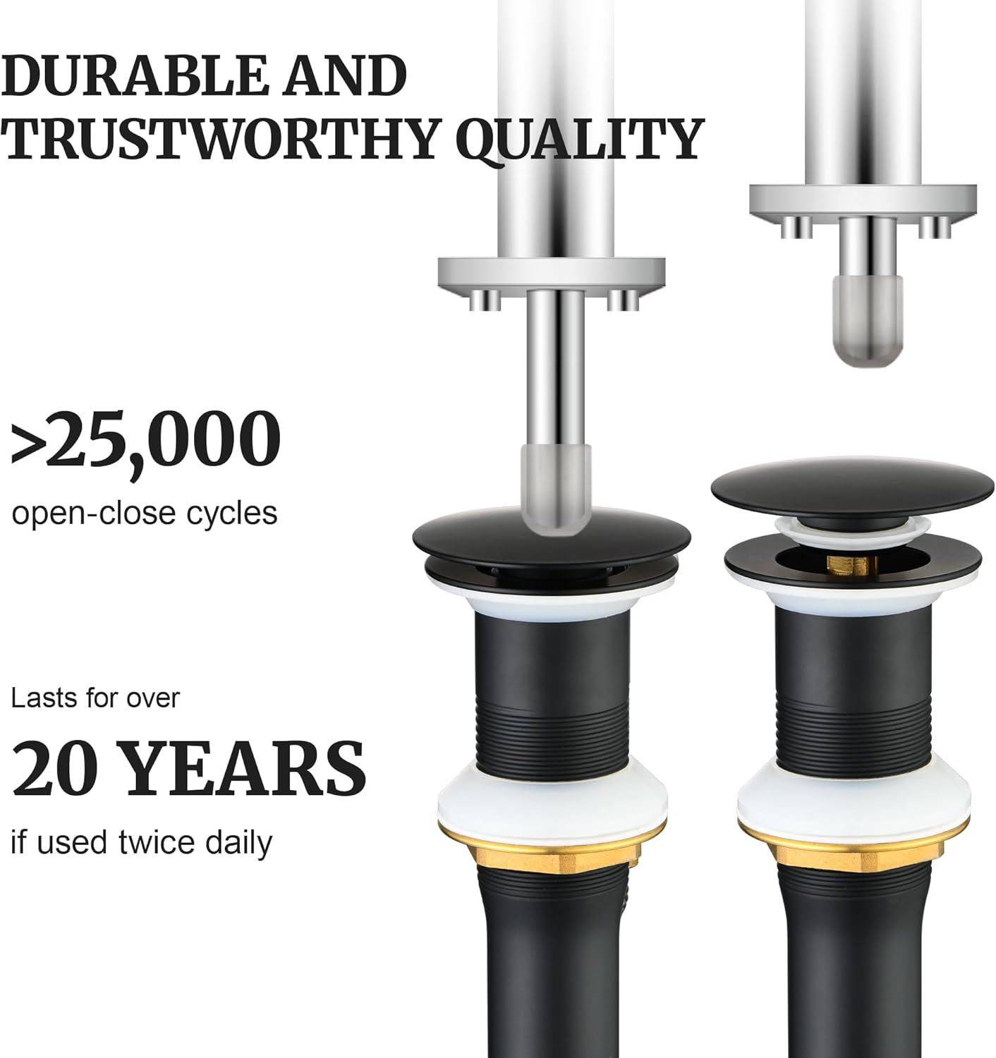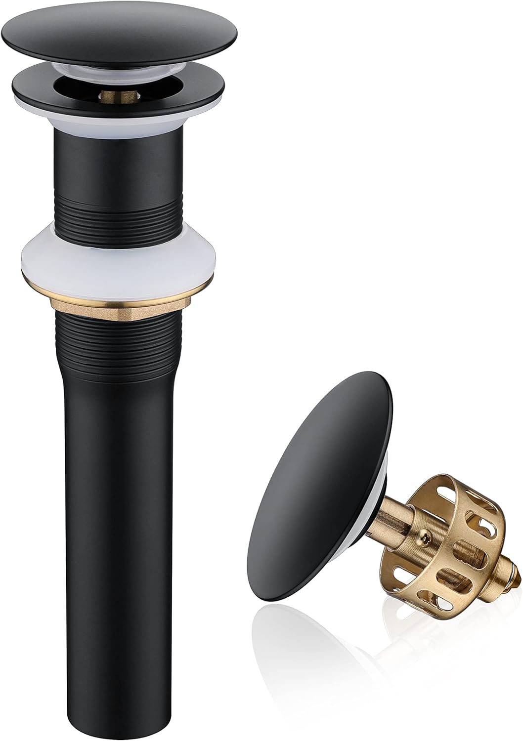 Pop up Sink Drain Stopper for Bathroom Vessel Vanity Sink Art Basin Matte Black, Big Cap Without Overflow, Metal Pop-up Drain Strainer with Detachable Basket Stopper