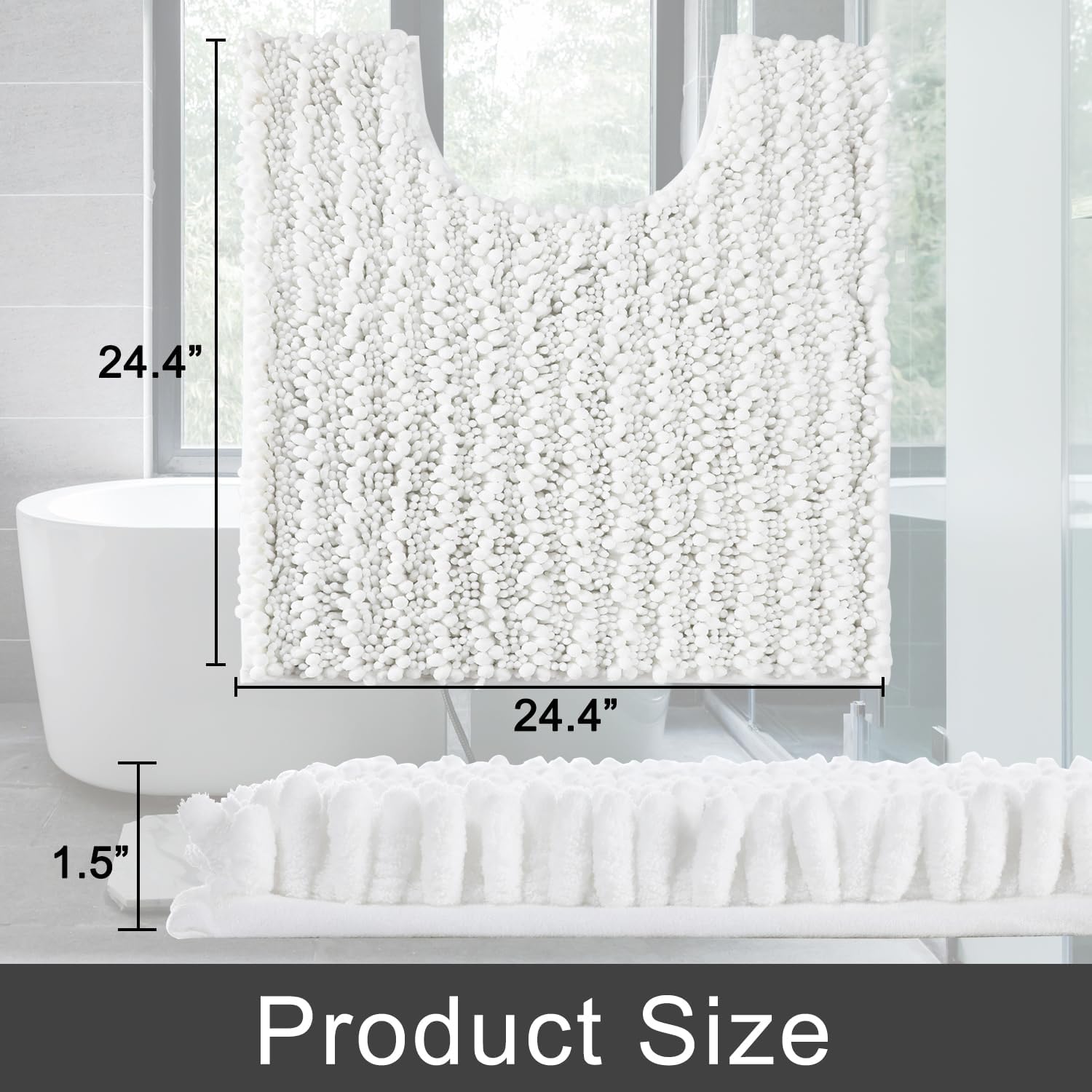Yimobra Toilet Rug U Shaped Washable 24x20 Inch - Ultra Soft Absorbent Chenille Bath Rugs for Toilet, Quick Dry & Machine Washable, Non Slip Contour Bathroom Mat, White