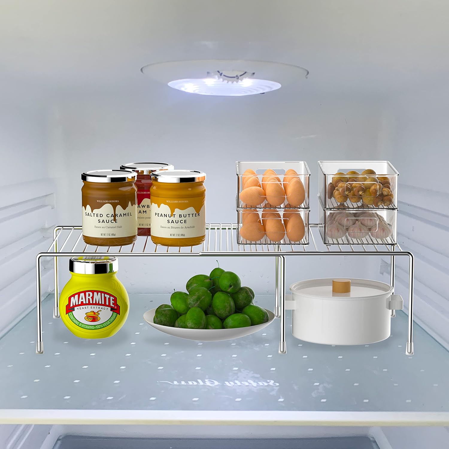 Redrubbit Cabinet Storage Shelf Rack, Expandable Metal Rustproof Kitchen Counter and Cabinet Shelf, Storage Rack Organizer Space Saver for Kitchen, Fridge, Cabinet, Bathroom, Chrome, Set of 6
