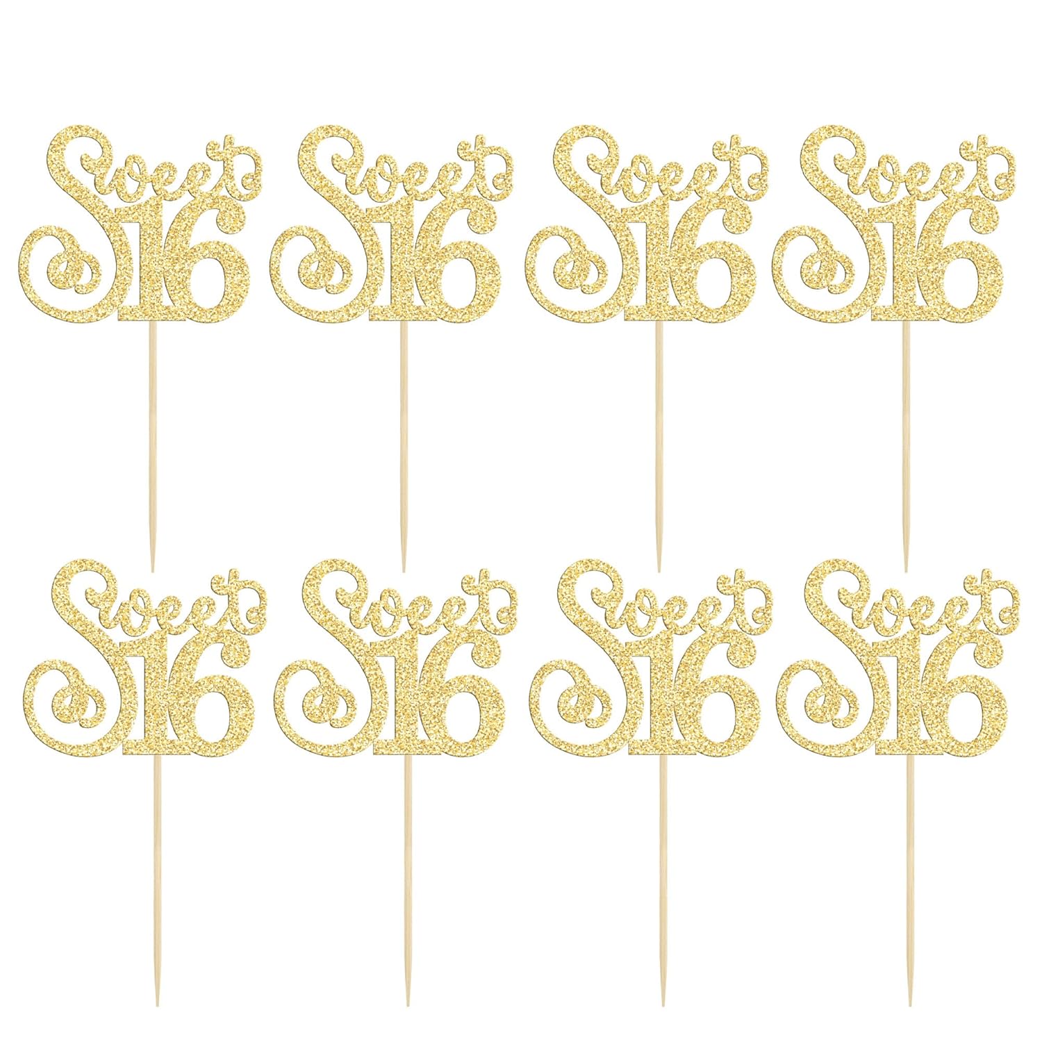 - ๐๐These Sweet 16 Cupcake Toppers are so cute and good for 16th birthday theme party, 16th anniversary theme party, 16 fabulous theme party cupcake decorations. They can make your cupcake more attractive and bring the fun to your party. You can also apply them for ice cream, fruits, cookies and other desserts.