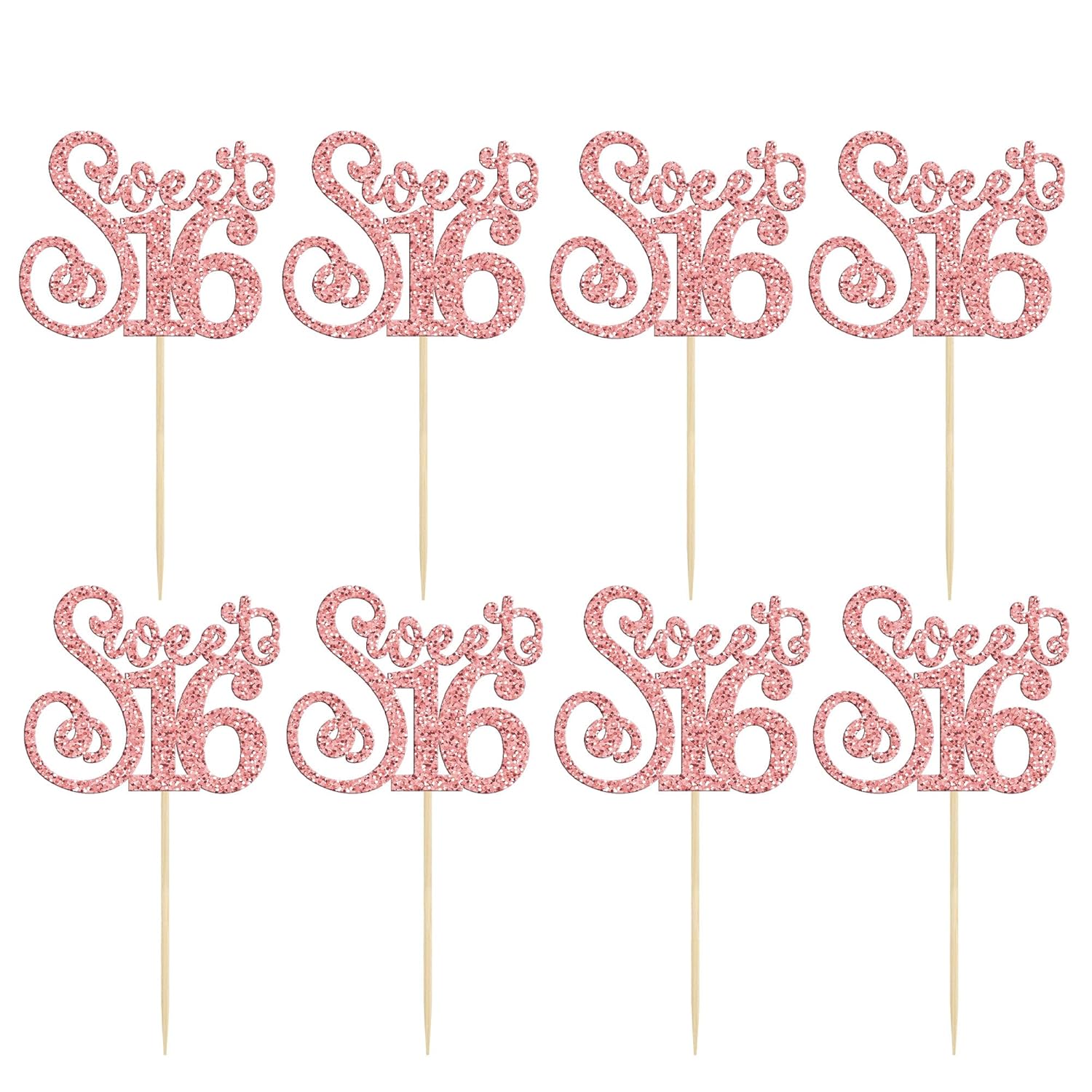 - ๐๐Premium Material: These Sweet 16 Cupcake Toppers are made of high quality 300 gram card stock and food-grade toothpick, very safe to put them on cakes, cupcakes, ice cream, fruits, pie, dessert, cheese or any dish and food appetizer you want to decorate sweet 16 theme party decorations.