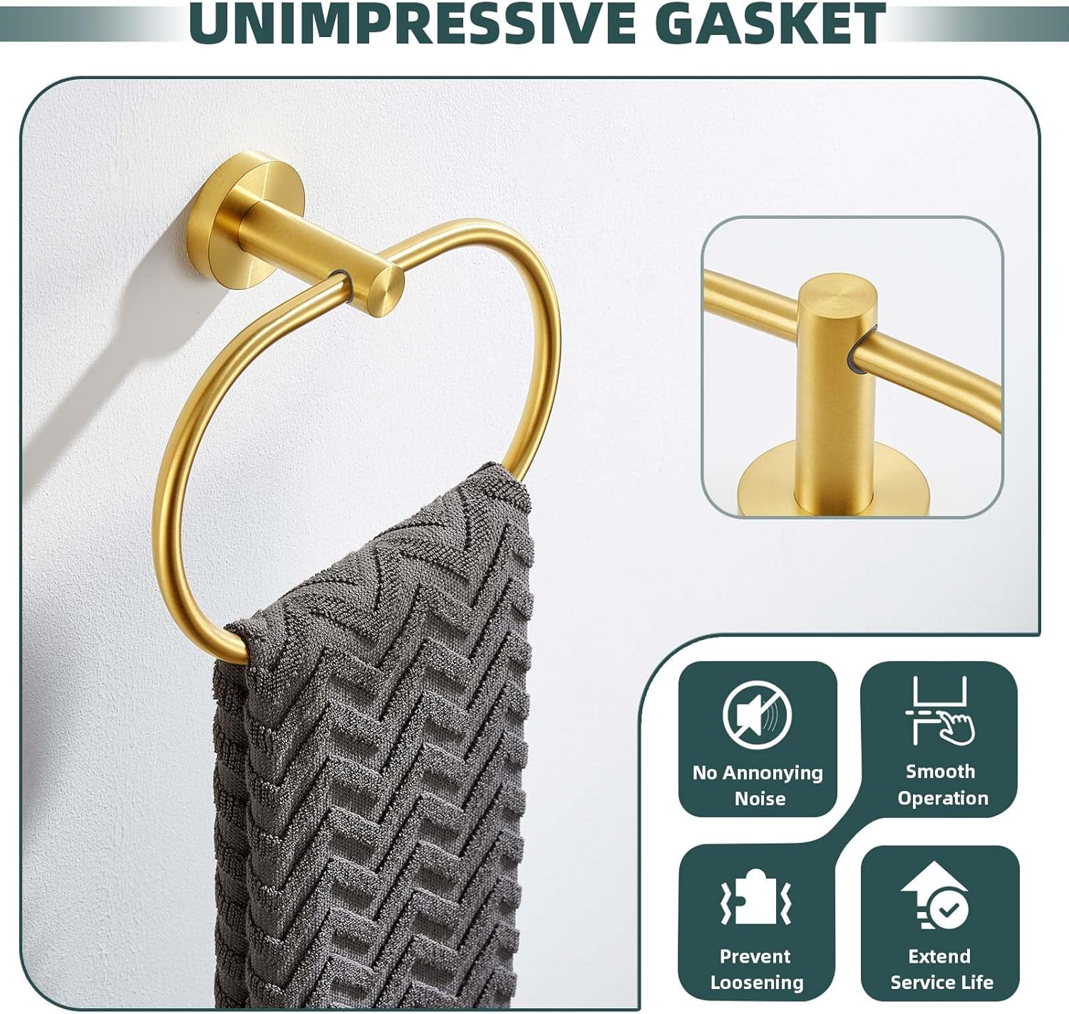 Suyar Brushed Gold Towel Ring, SUS 304 Stainless Steel Hand Towel Holder for Bathroom Wall Mount, Oval Shape