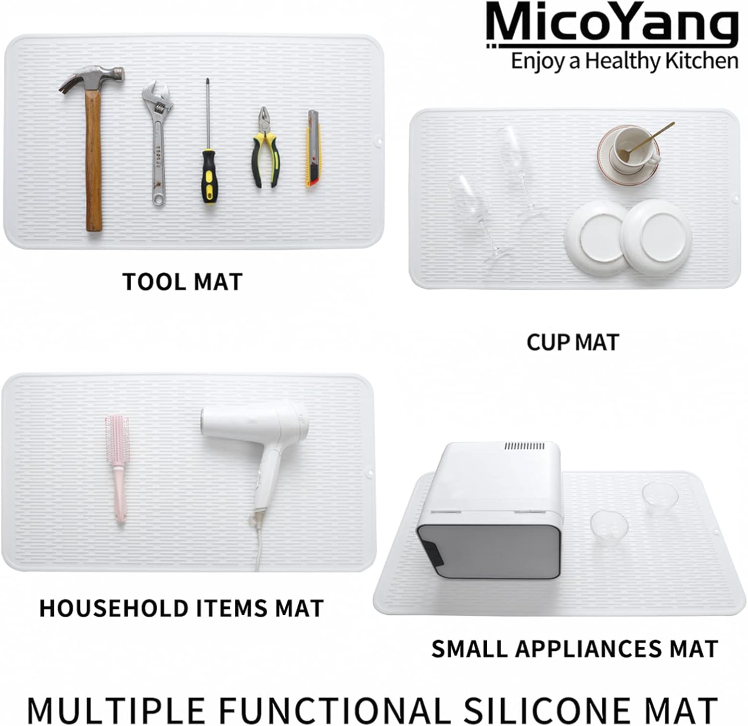 Silicone Dish Drying Mat for Multiple Usage,Easy clean,Eco-friendly,Heat-resistant Silicone Mat for Kitchen Counter or Sink,Refrigerator or Drawer Liner White 4XL 32 inches x 18 inches