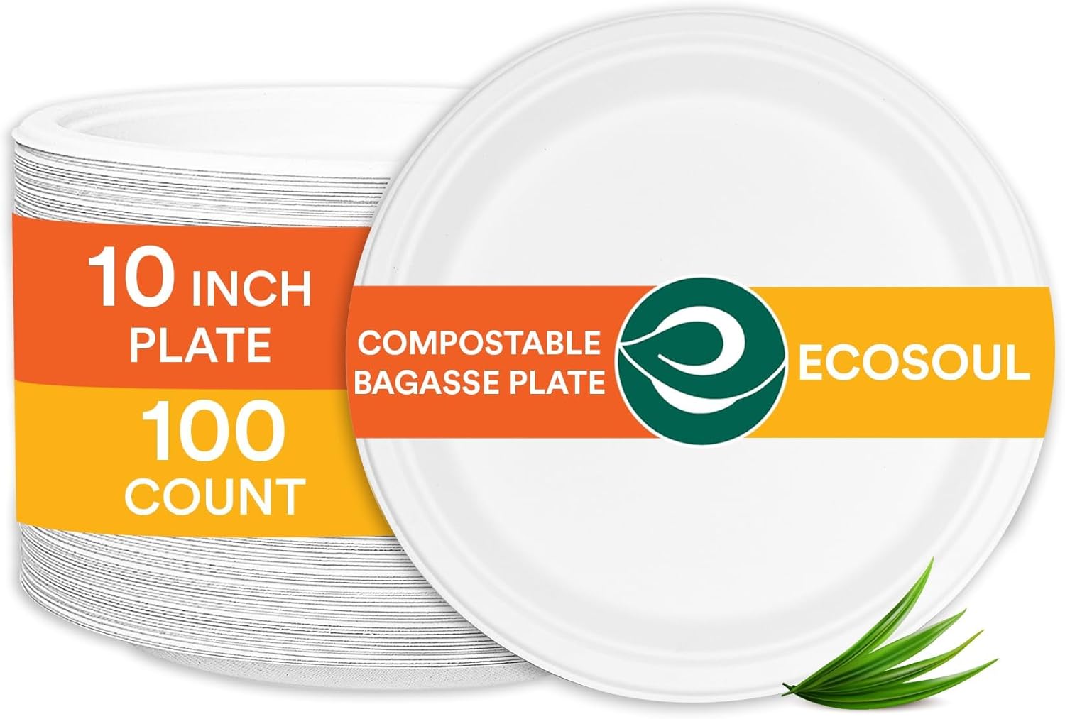 - ššš-ššššššššš : ECO SOUL Compostable 9 Inch Paper Plates are made from sugarcane extract, offering a sturdy and eco-friendly alternative to traditional plastic plates.
